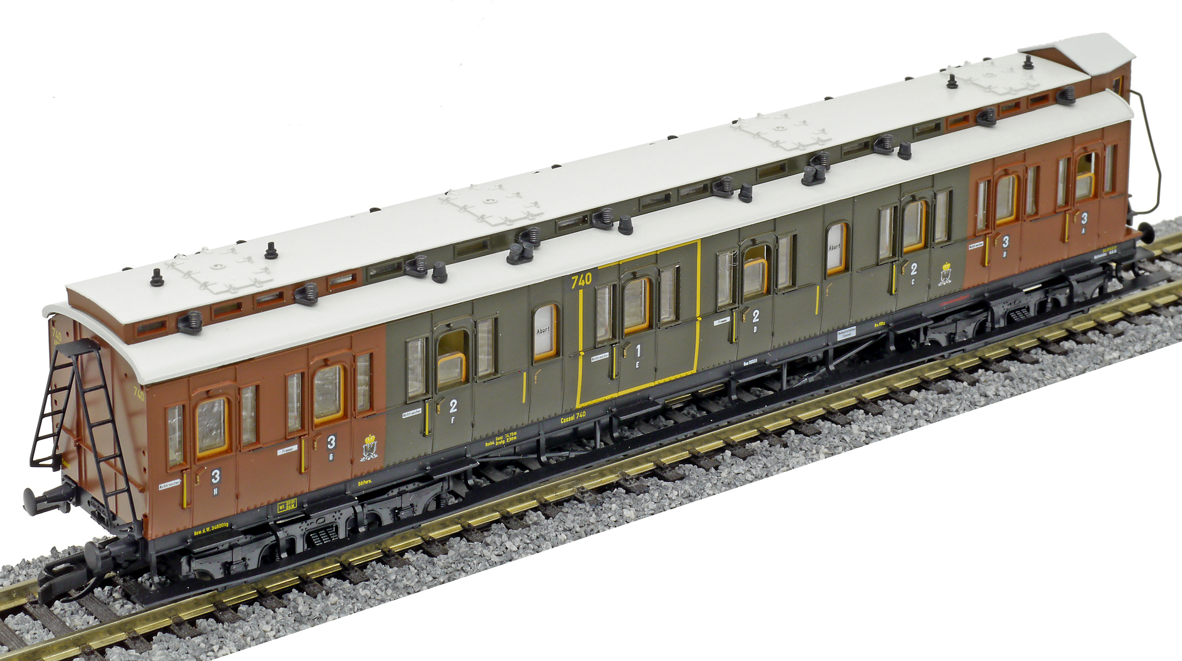 | oddílový osobní vůz tmavě zelený-červenohnědý 1./2./3. tř. |