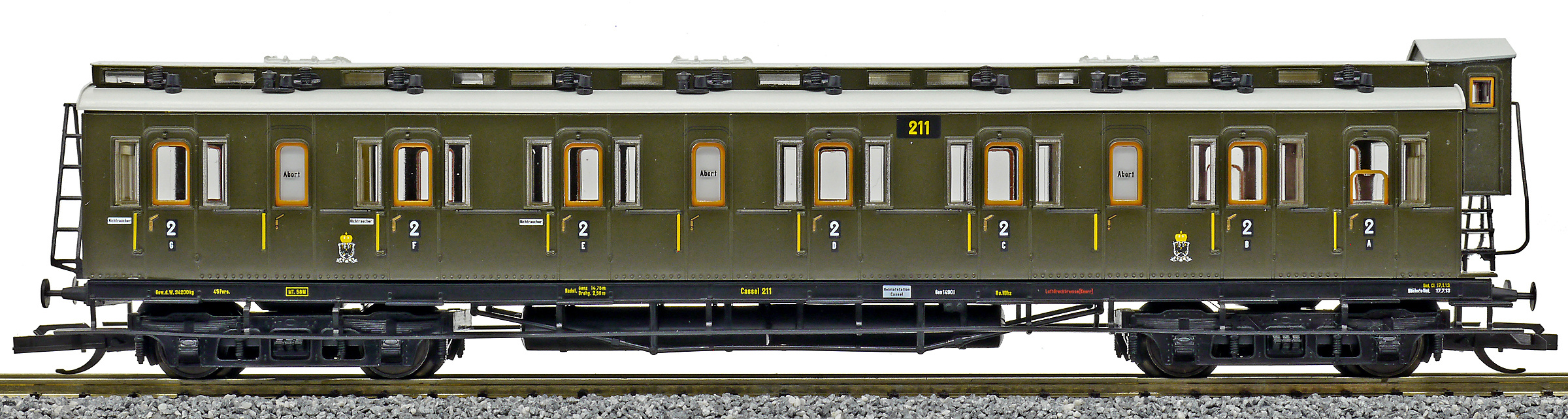 | oddílový osobní vůz tmavě zelený 2. tř. |