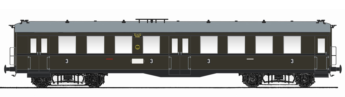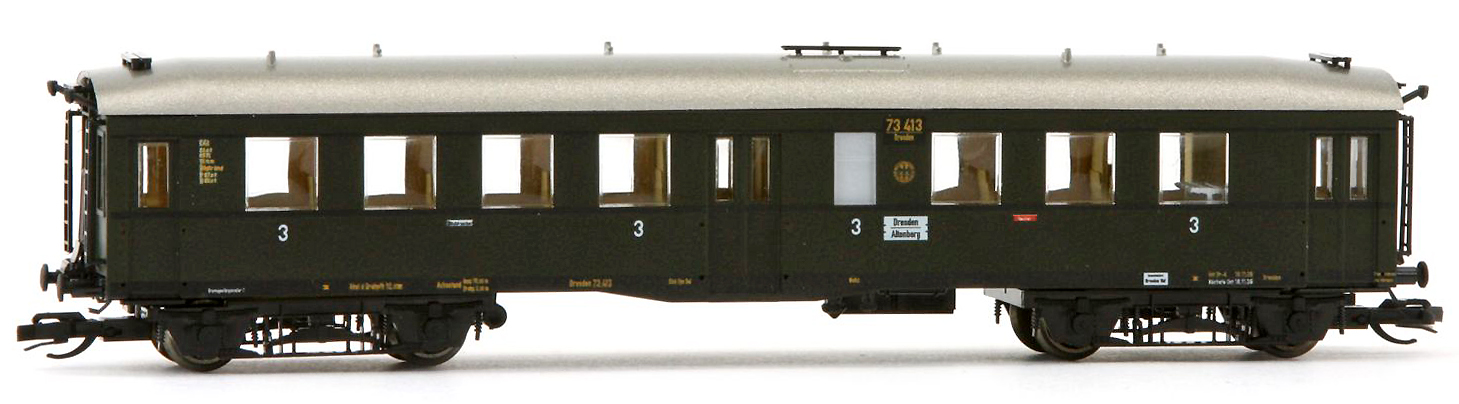 | osobní vůz tmavě zelený s šedou střechou 3. tř. |