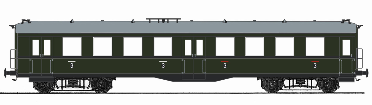| osobní vůz zelený s šedou střechou 3. tř. |