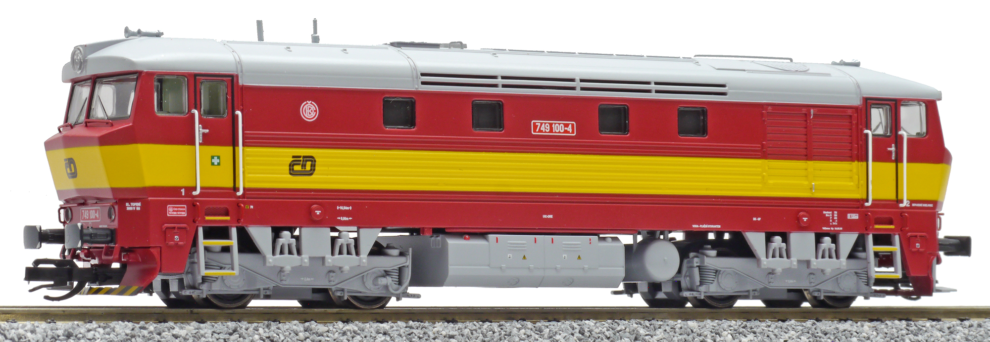 Popis   dieselová lokomotiva červená s výstražným pruhem, šedá střecha