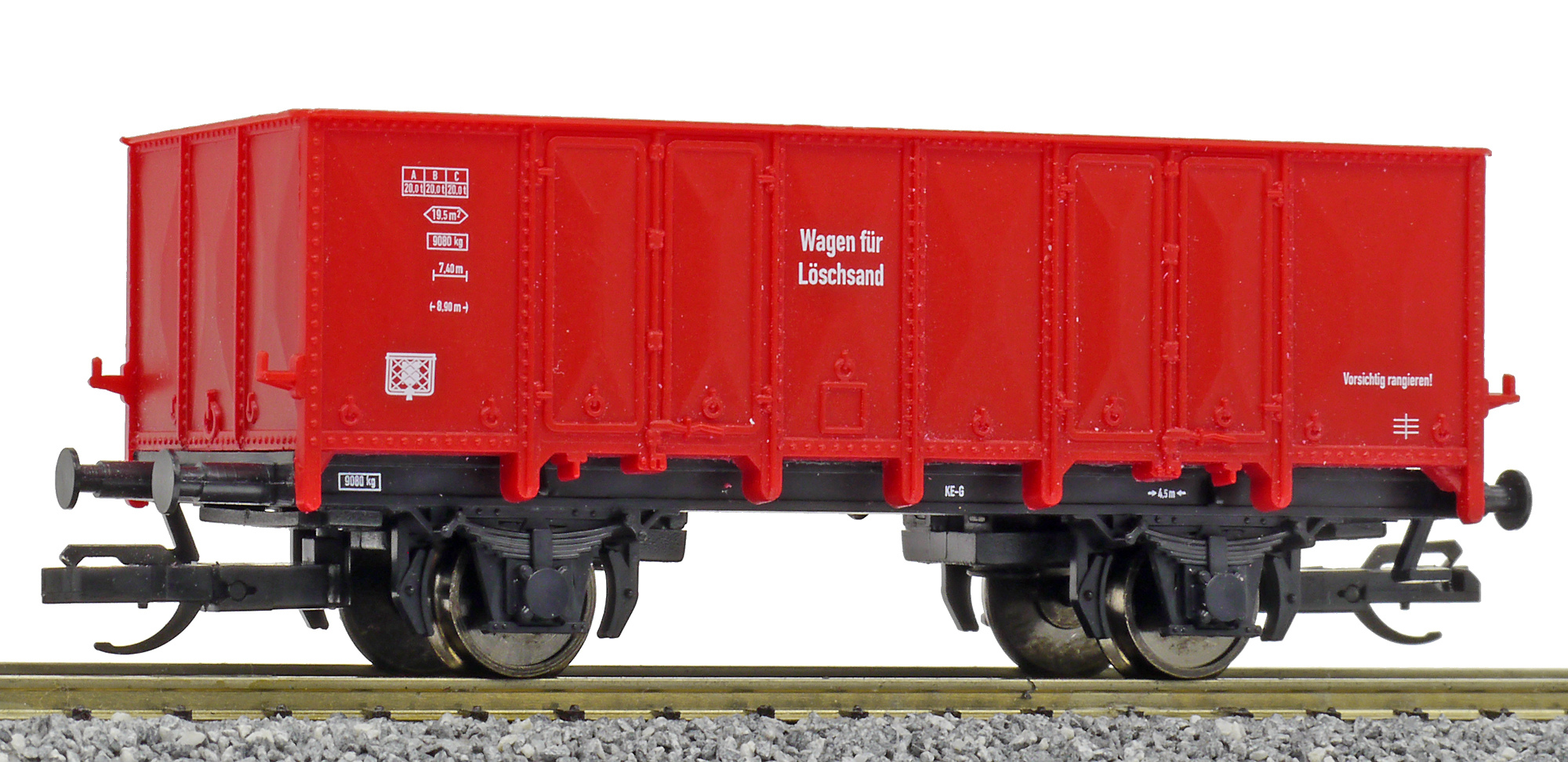 Popis   otevřený vůz červený s nákladem písku do požárního vlaku