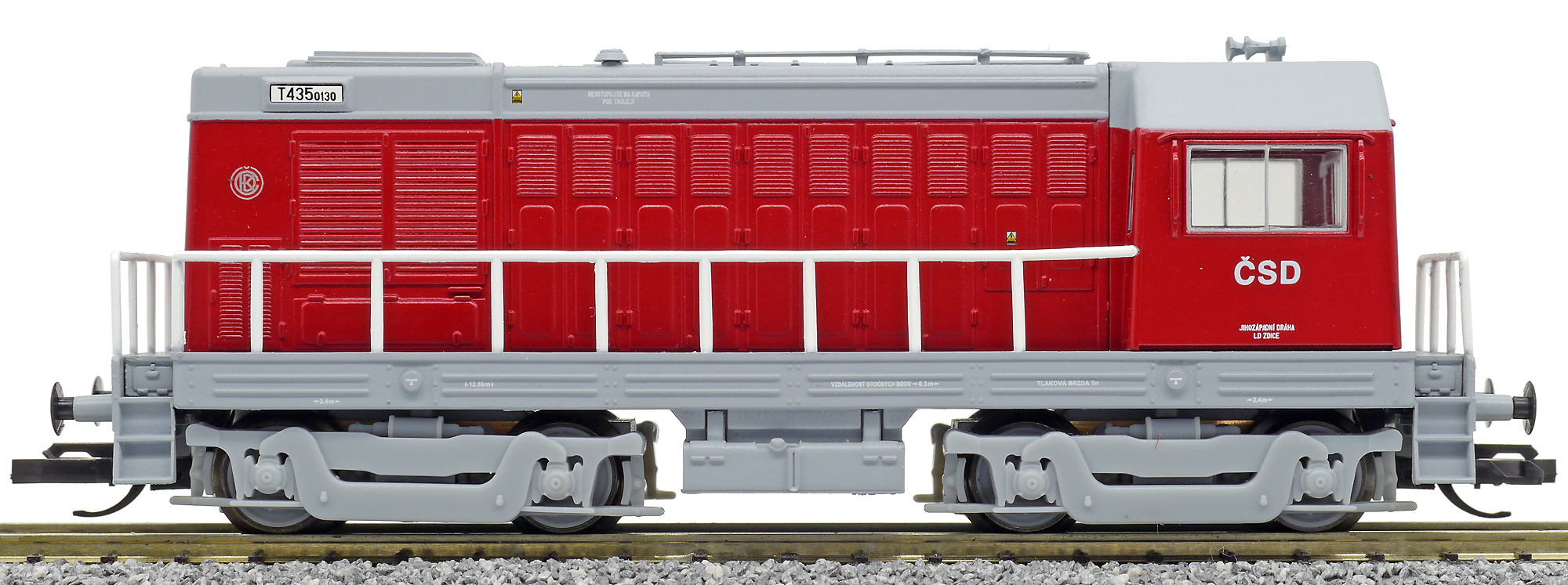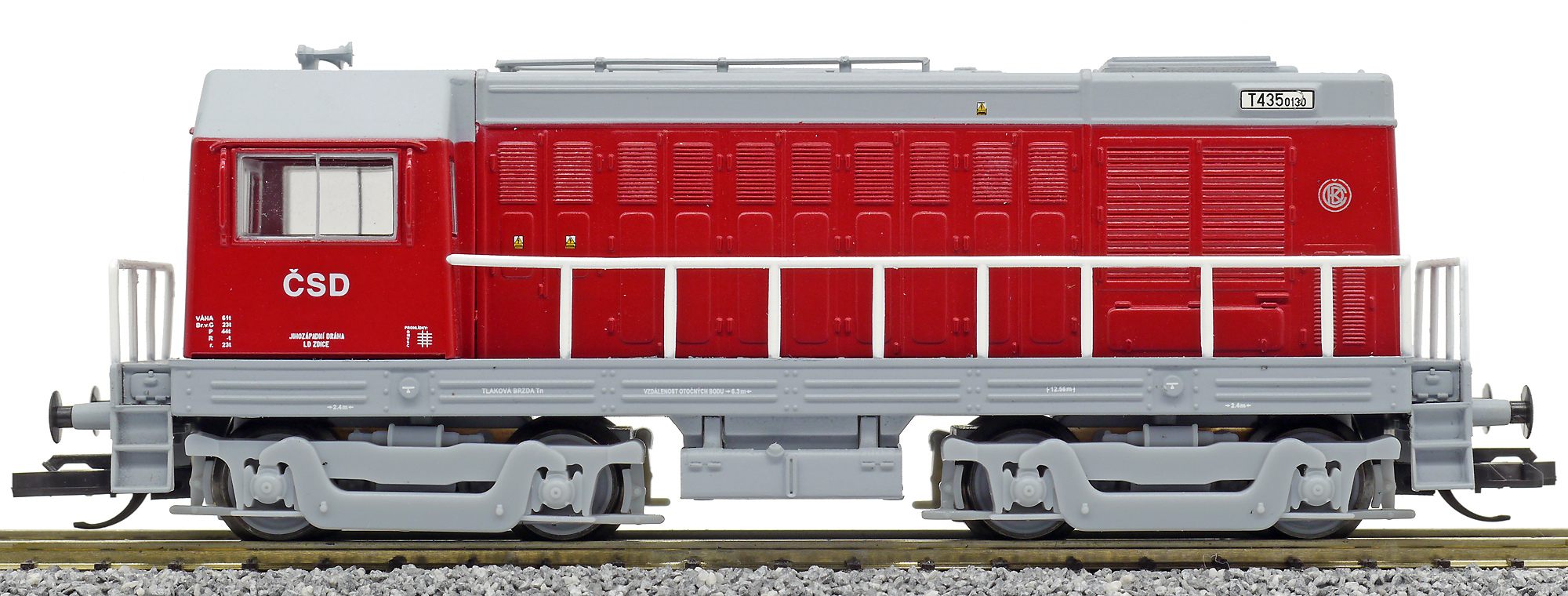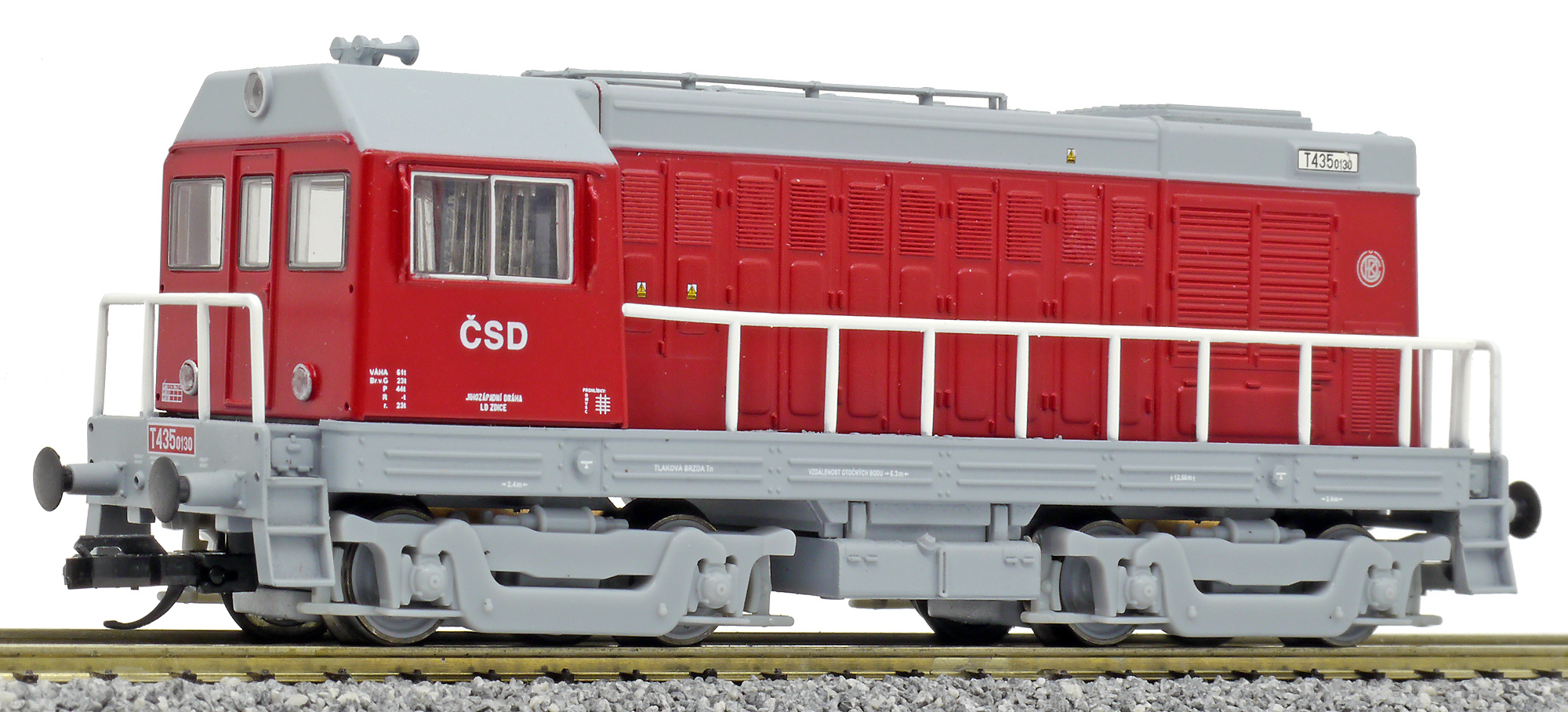 měřítko 1:120 - rozchod kolejí 12 mm osvětlení - 3 reflektory vpředu, 2 světla vzadu, přepínatelné podle směru jízdy 4 hnané nápravy 2 bandážované nápravy kinematika krátkého spřáhla (KKK) podle normy NEM 358 digitální rozhraní podle NEM 658 s konektorem PluX12 105 mm - celková délka modelu přes nárazníky 4 - celkový počet náprav nebo rozložení náprav 150 g - hmotnost brutto - model včetně prodejního obalu 102 g - hmotnost netto - pouze model