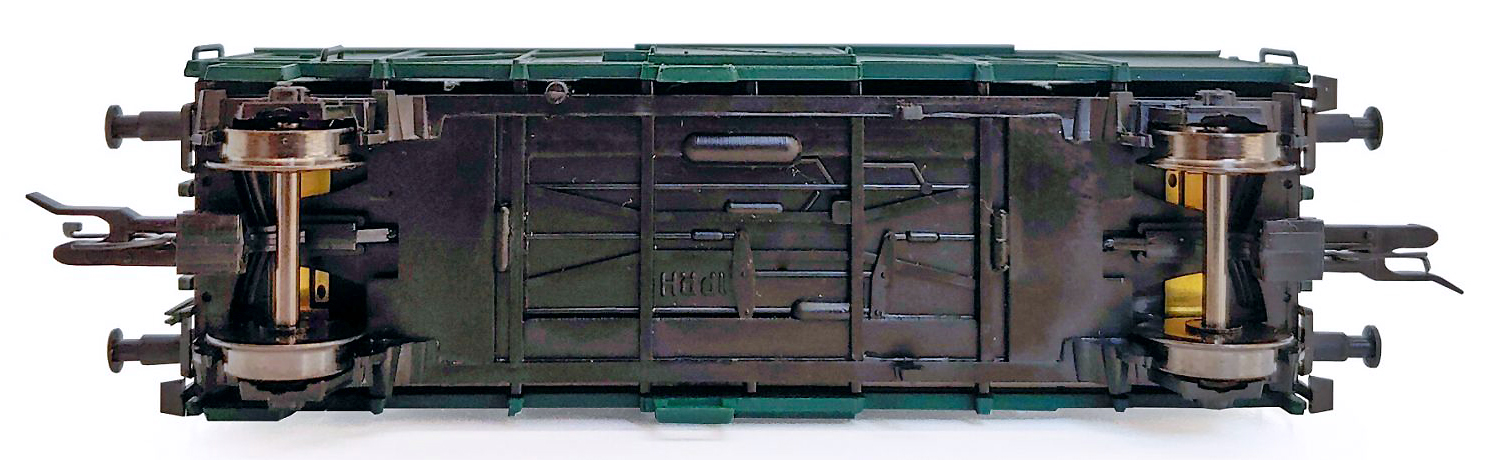 | služební vůz zelený s šedou střechou pro nákladní vlaky |