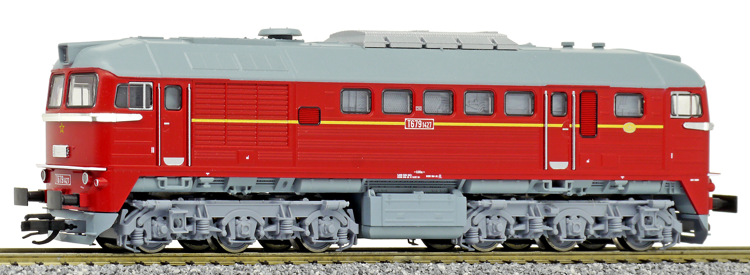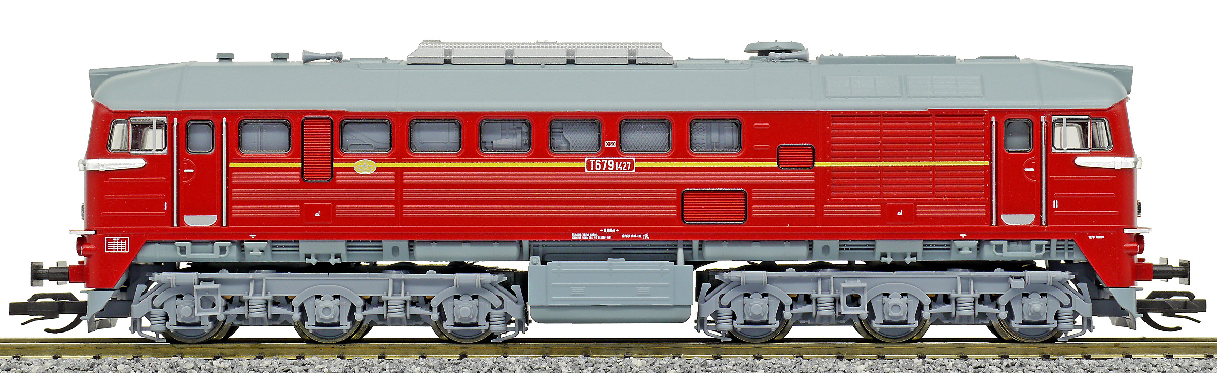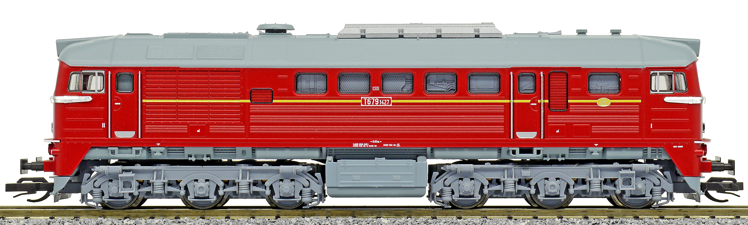 Popis   dieselová lokomotiva červená, světle šedá střecha a šedý pojezd
