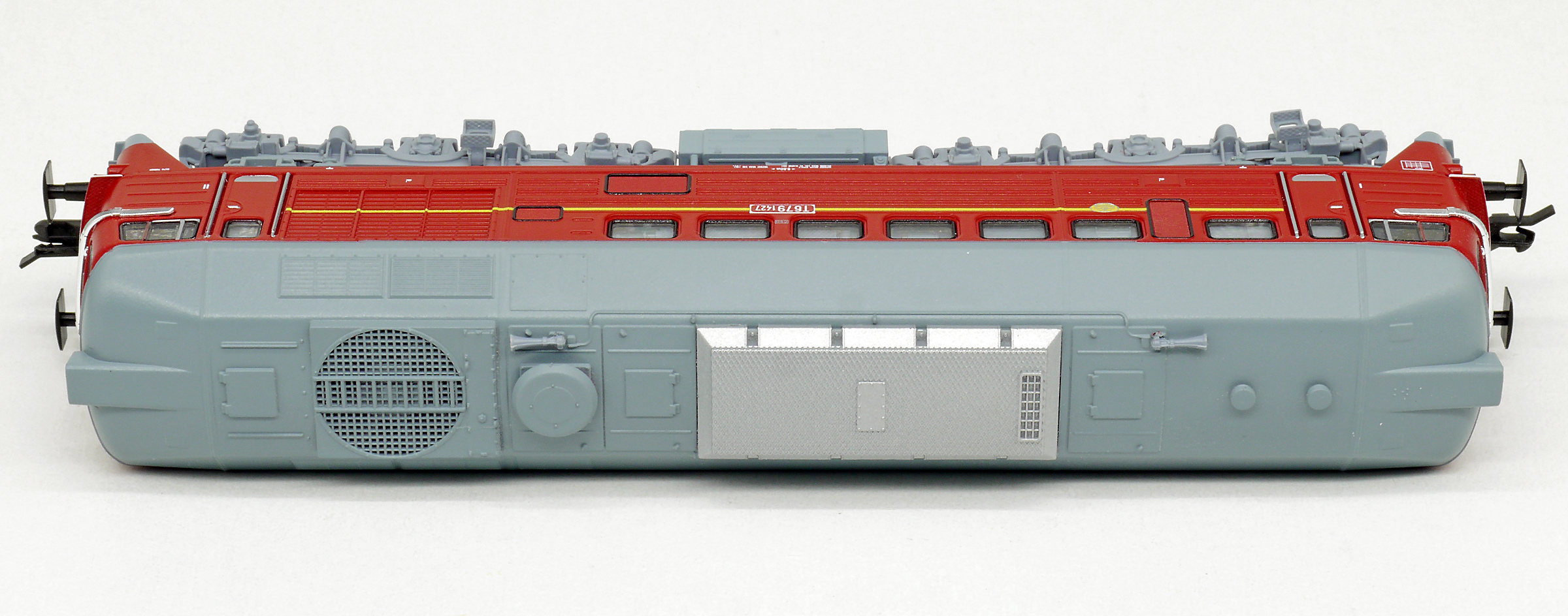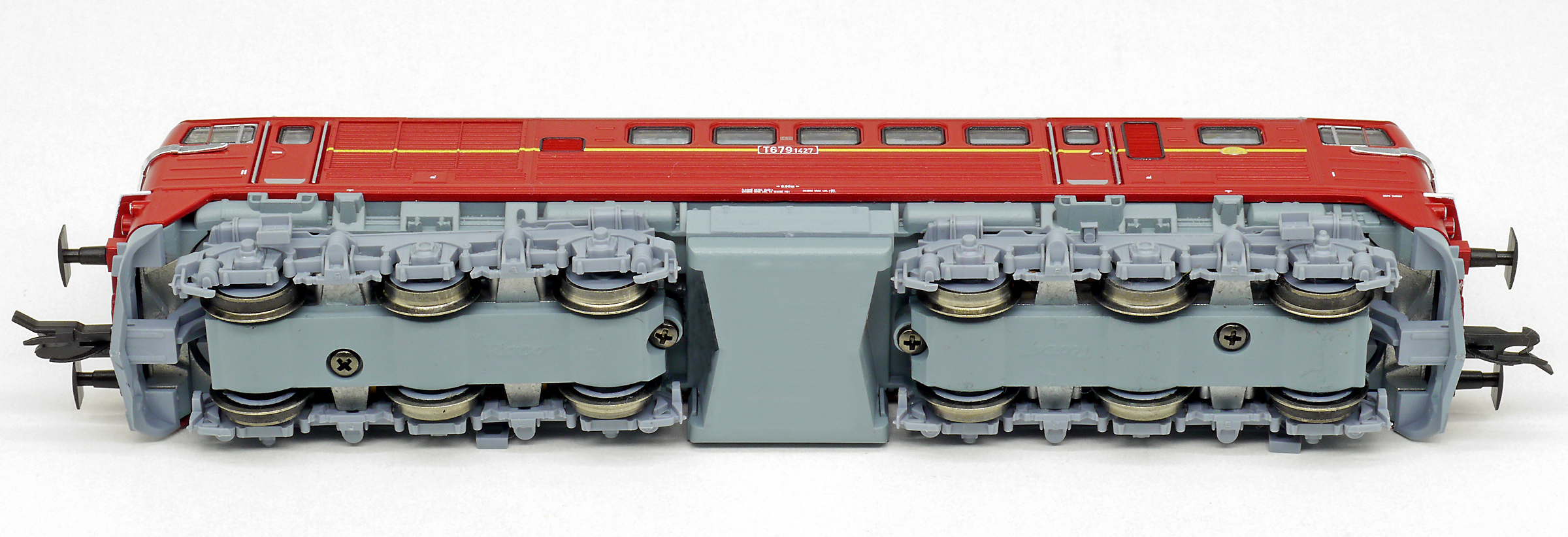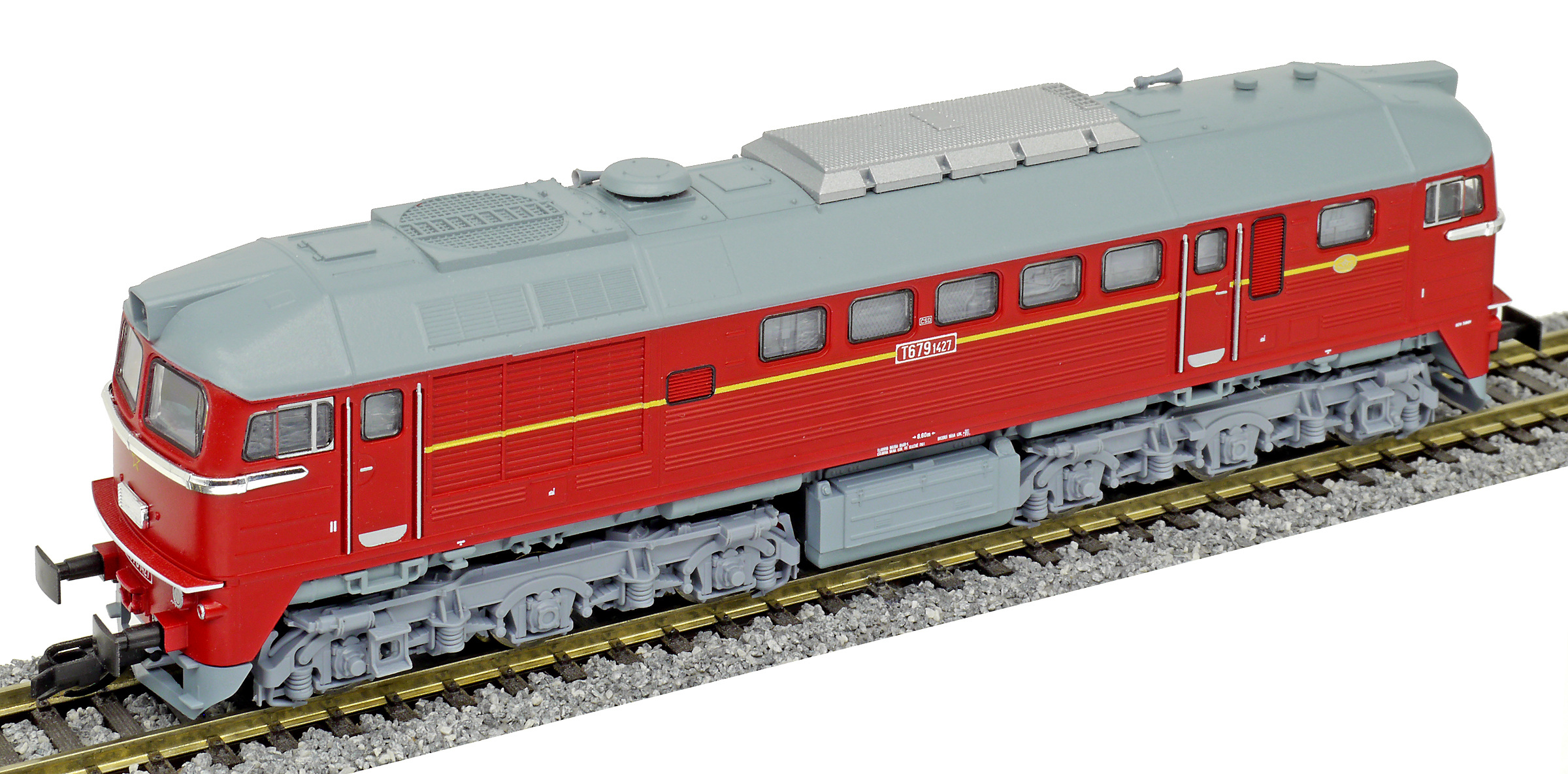 Popis   dieselová lokomotiva červená, světle šedá střecha a šedý pojezd