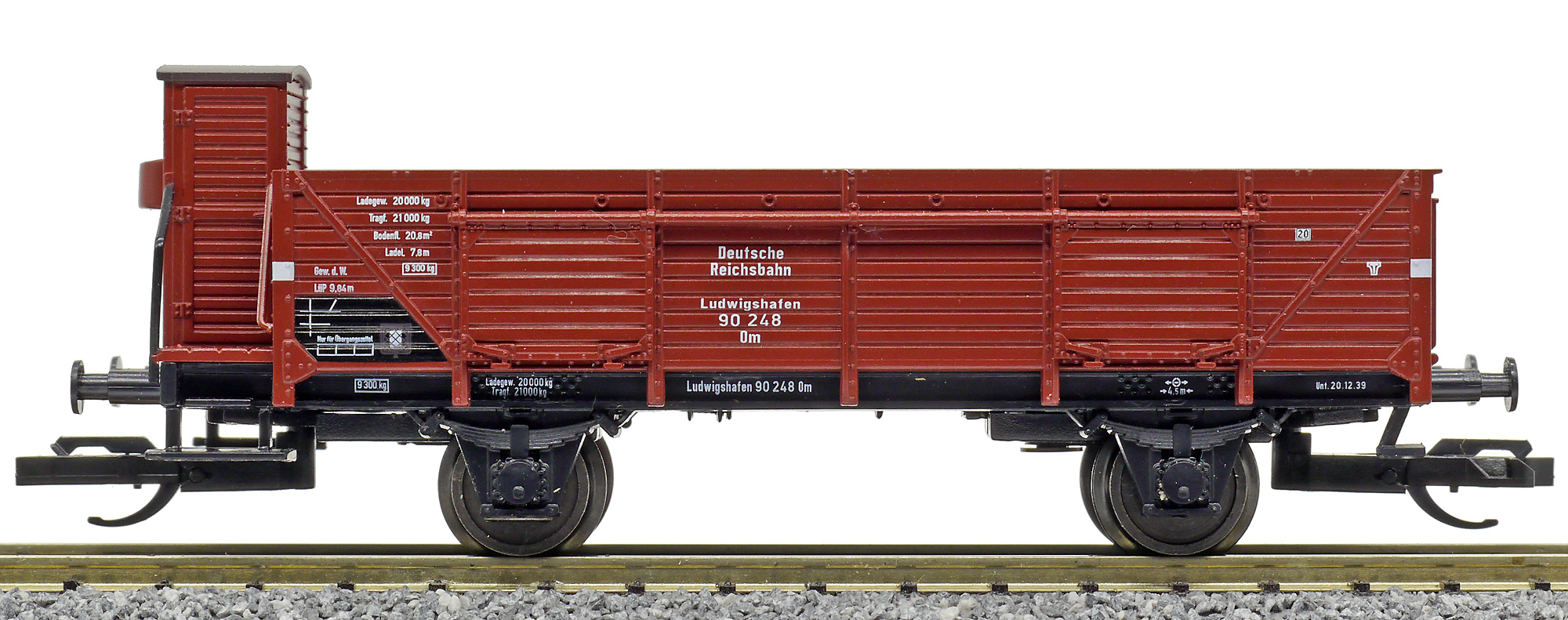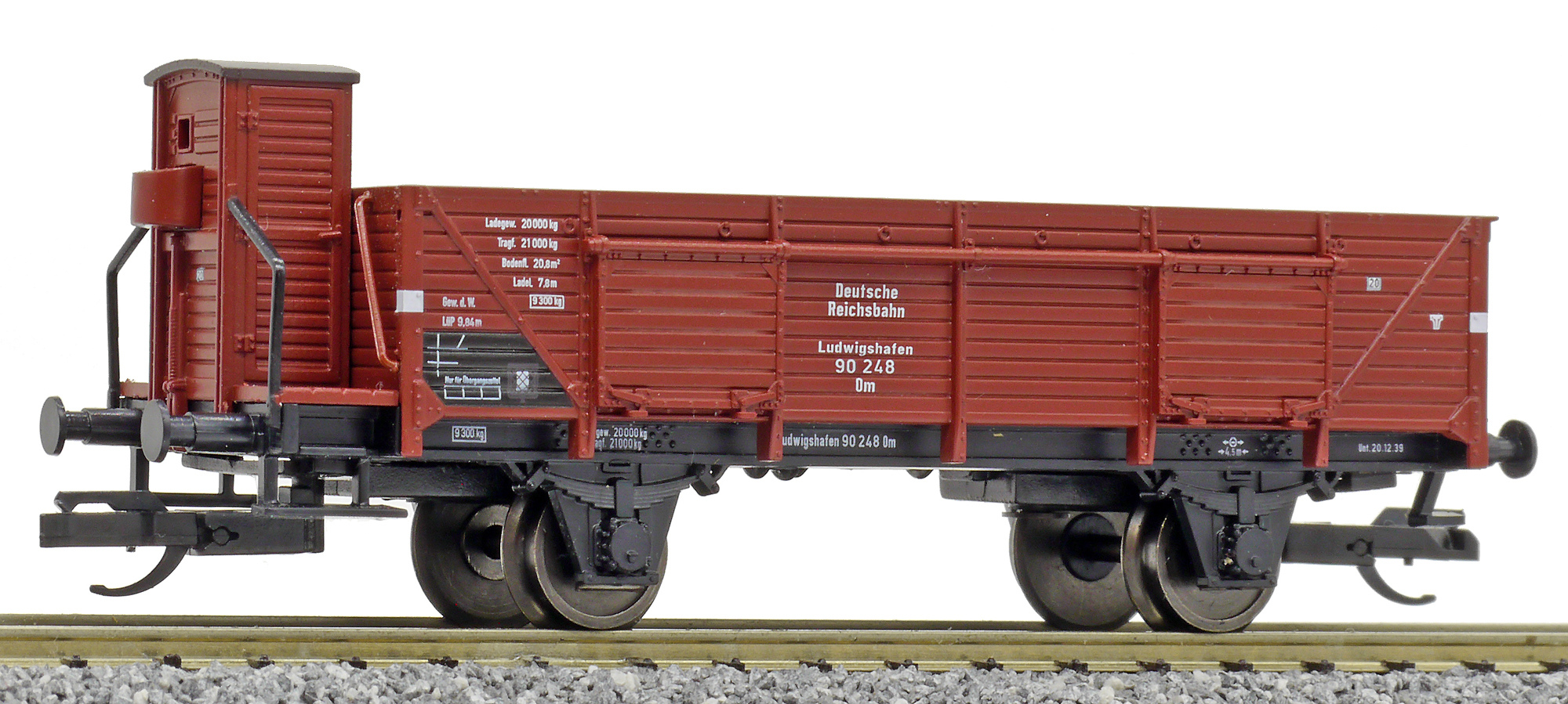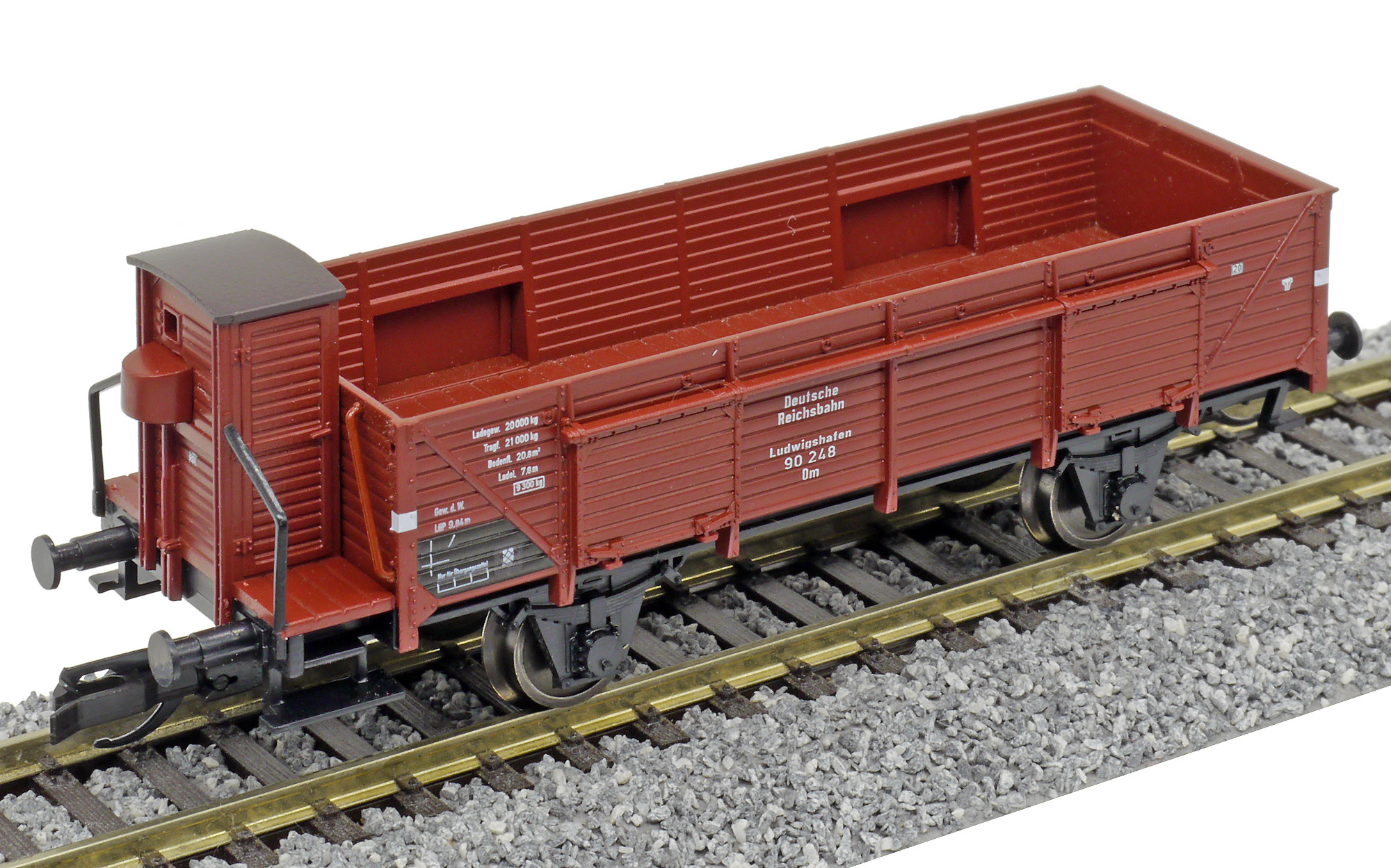 | otevřený nákladní vůz červenohnědý s brzdařskou budkou |