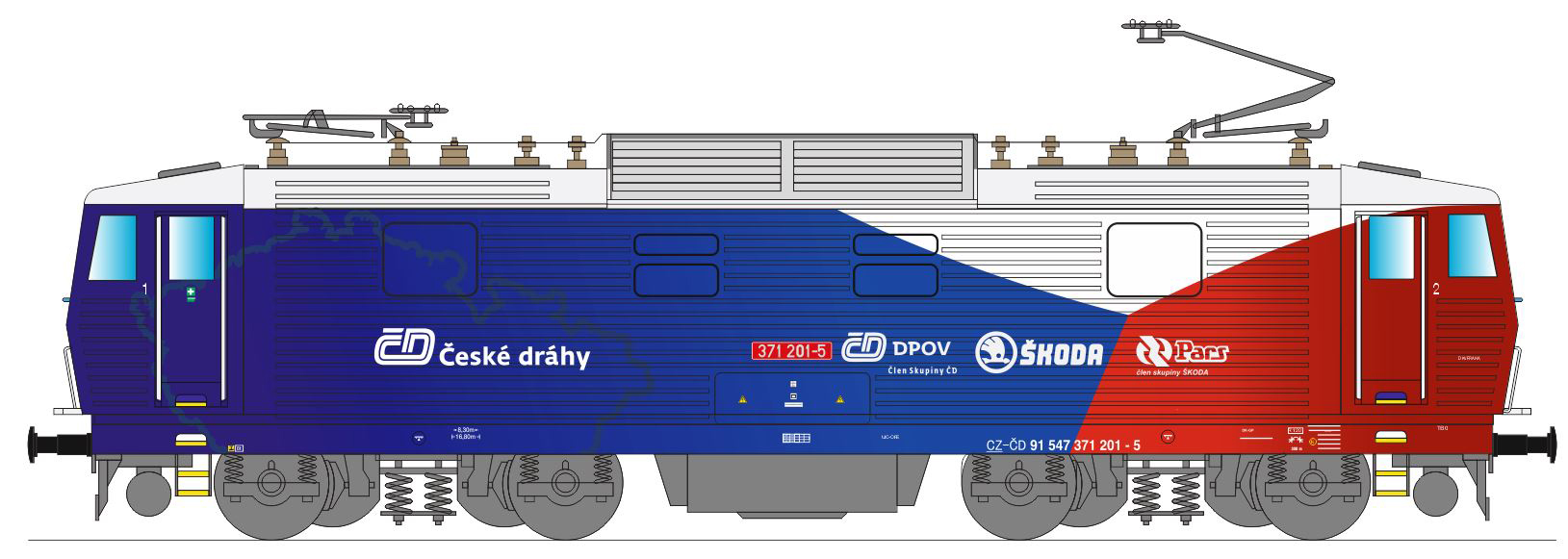 | elektrická lokomotiva v barevném motivu „Vlajka“ |