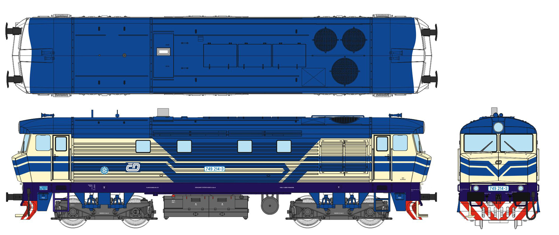 | dieselová lokomotiva v barevném motivu modrá-slonová kost |