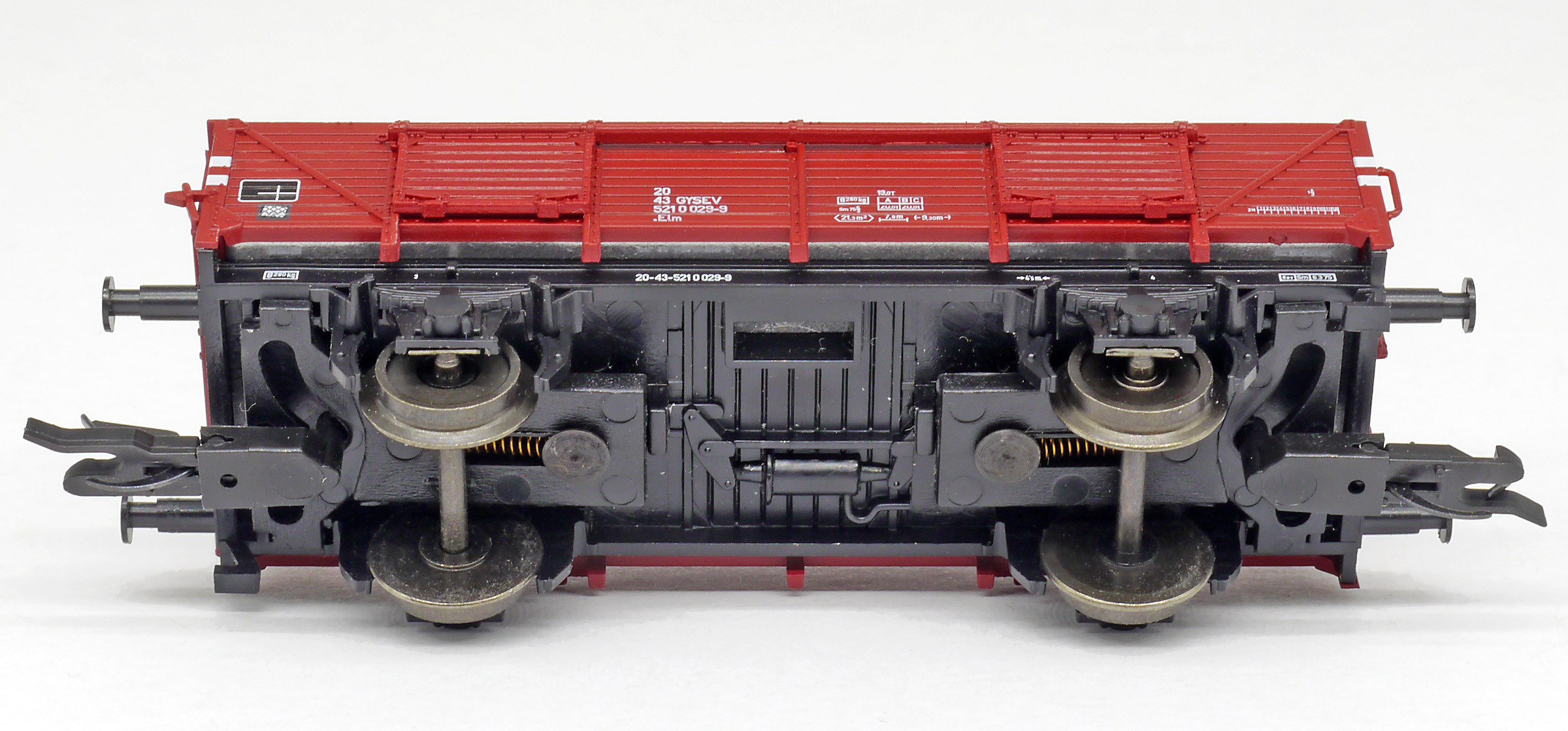měřítko 1:120 - rozchod kolejí 12 mm kinematika krátkého spřáhla (KKK) podle normy NEM 358 76 mm - celková délka modelu přes nárazníky 2 - celkový počet náprav nebo rozložení náprav 70 g - hmotnost brutto - model včetně prodejního obalu 20 g - hmotnost netto - pouze model