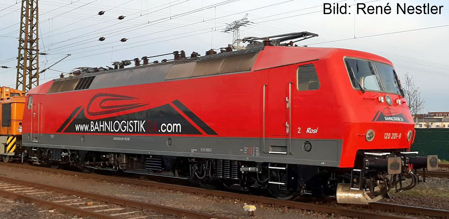 | elektrická lokomotiva v barevném schematu „Bahnlogistik24“ |