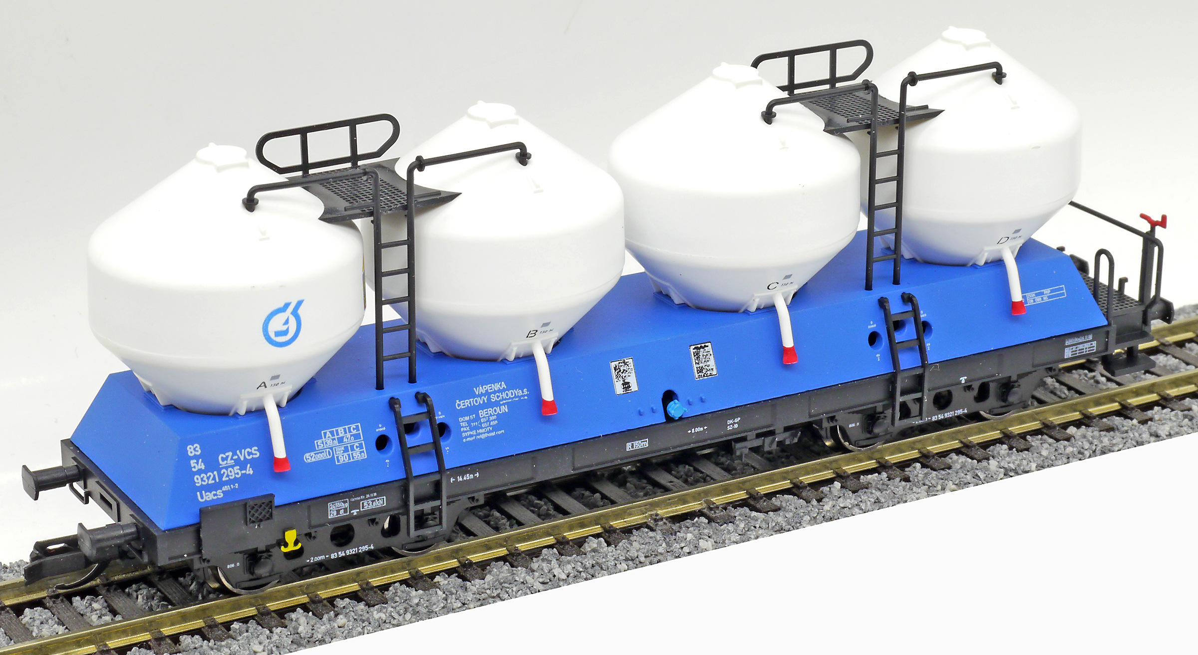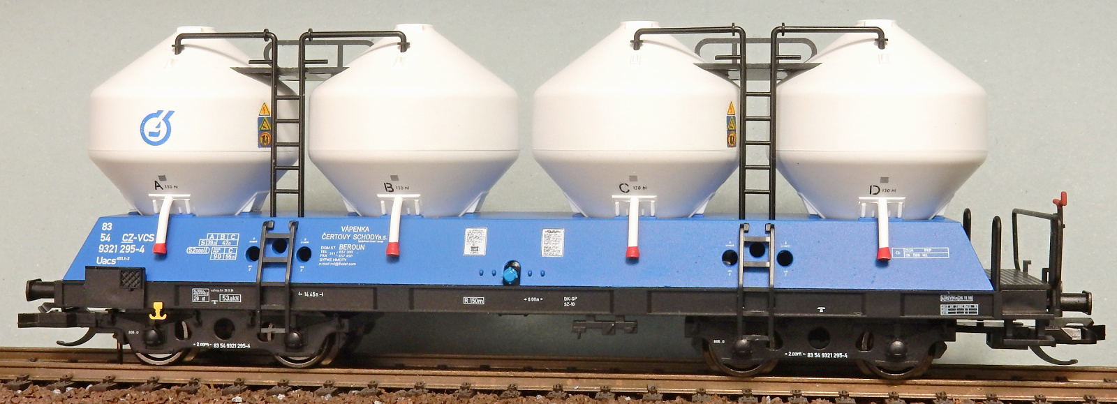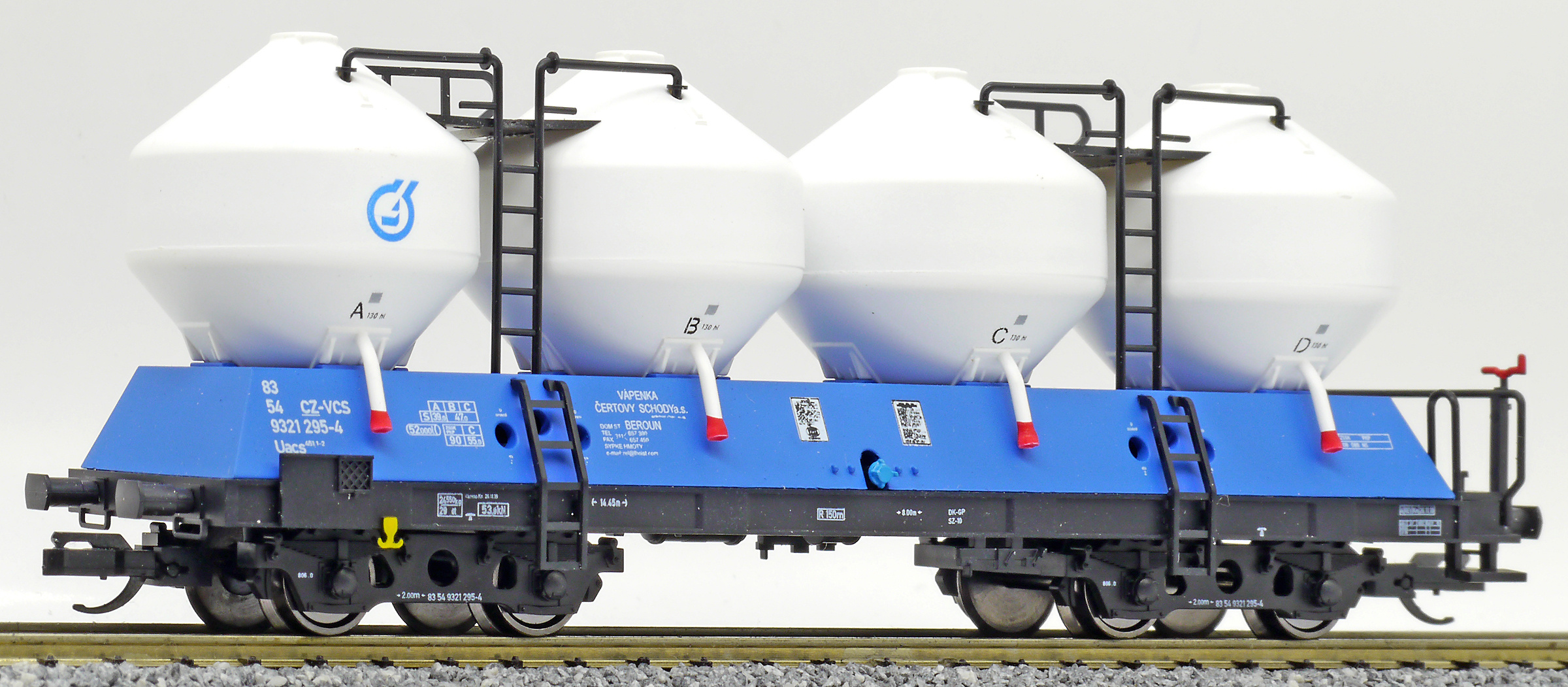 | nákladní samovýsypný vůz modrý s bílými nádobami „Vápenka Čertovy schody“ |
