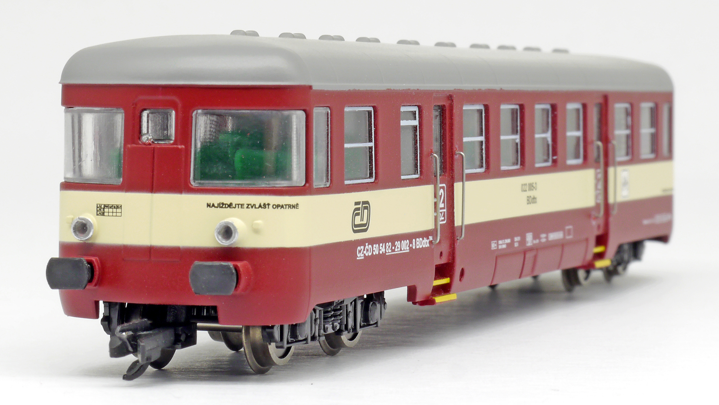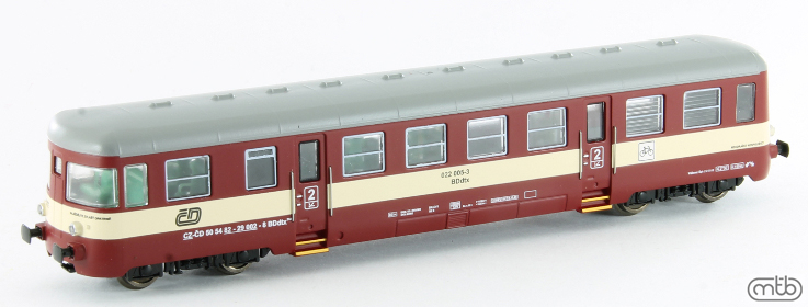 | osobní vůz červený-slonová kost s šedou střechou se zavazadlovým oddílem 2. tř. |