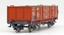 | otevřený nákladní vůz červenohnědý, bílé nápisy |
