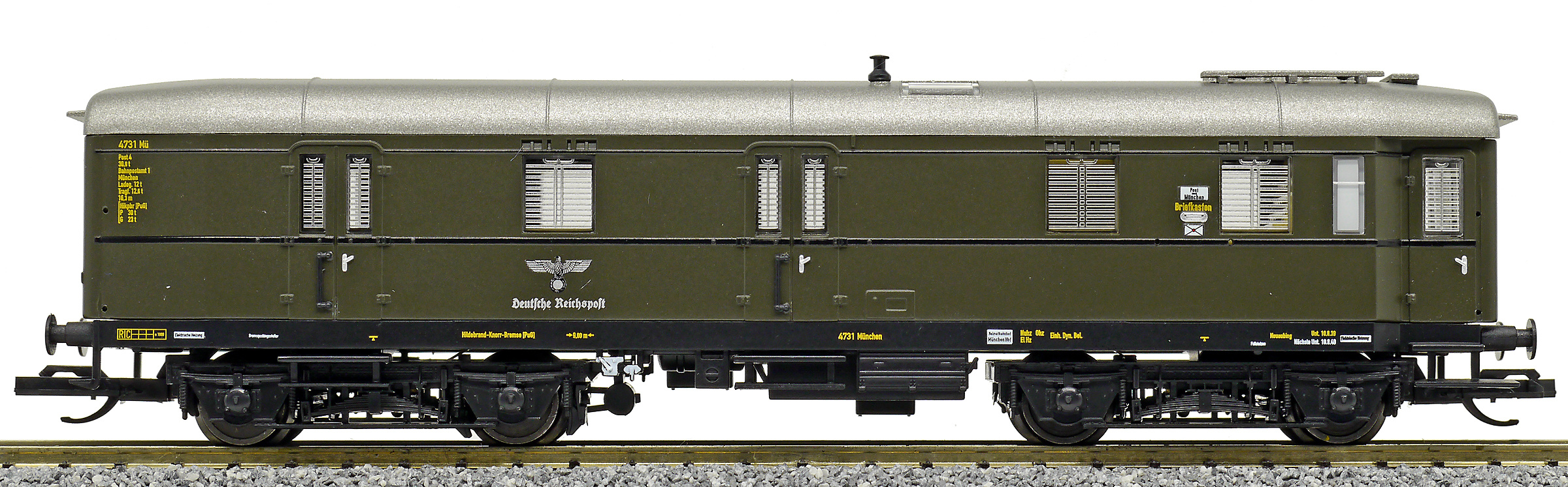 | poštovní vůz zelený se stříbrnou střechou „Deutsche Reichspost” |
