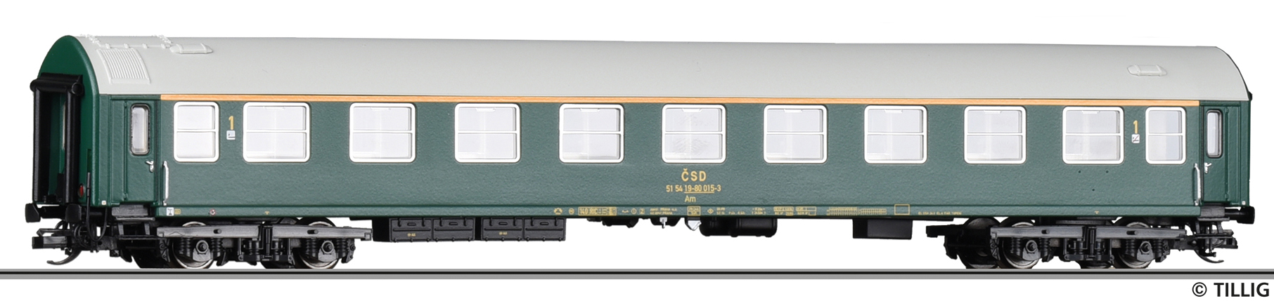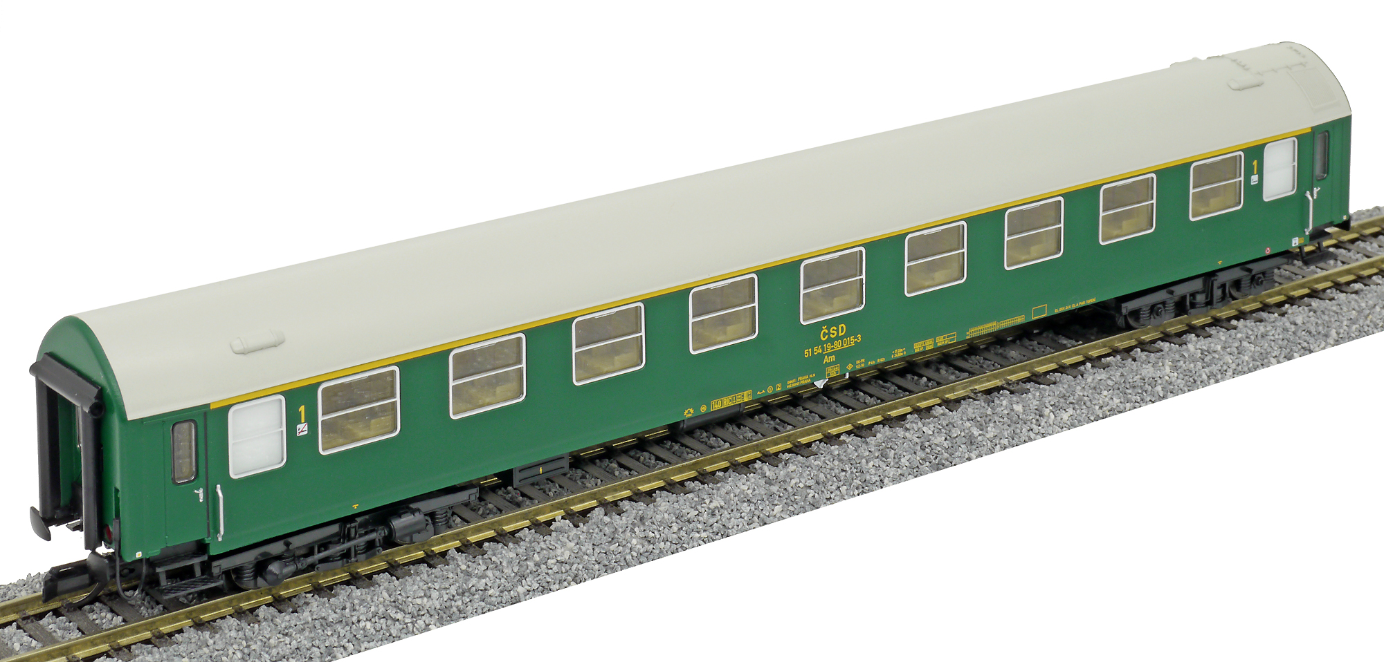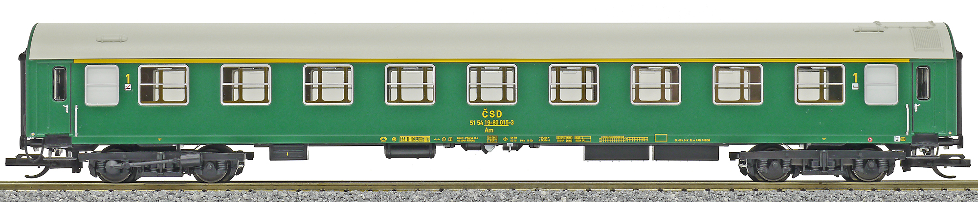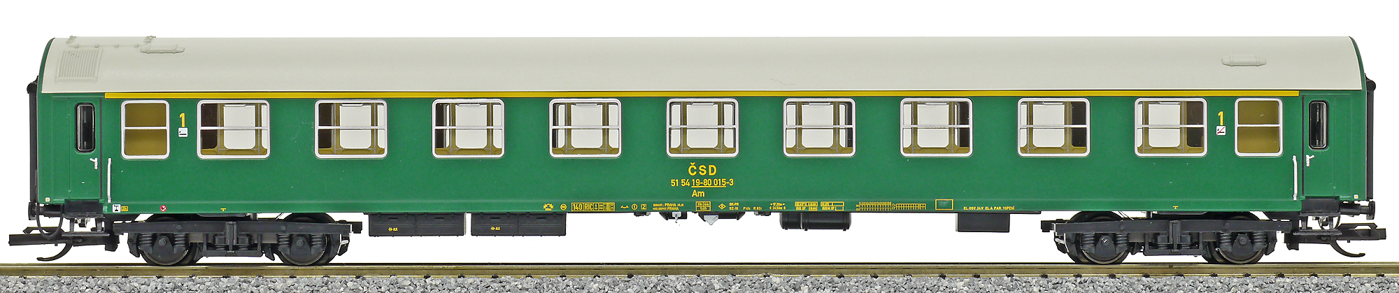 Popis   rychlíkový vůz zelený s šedou střechou 1. tř.