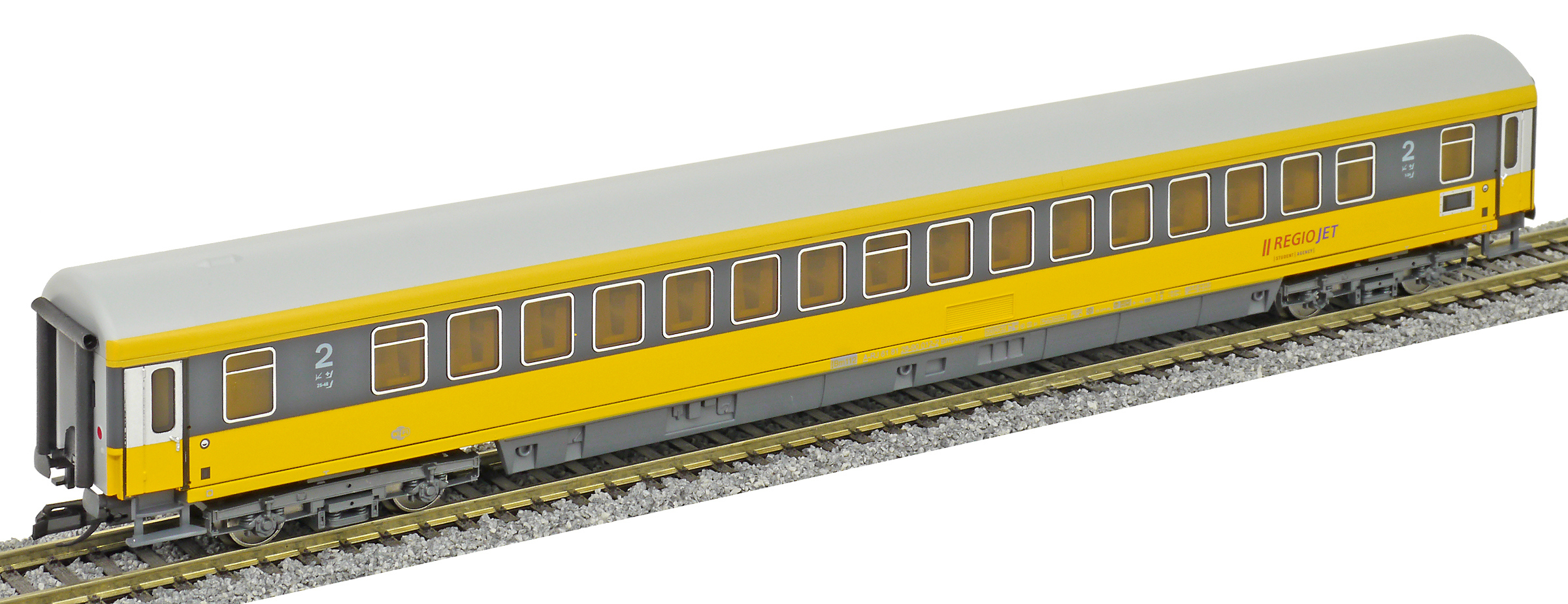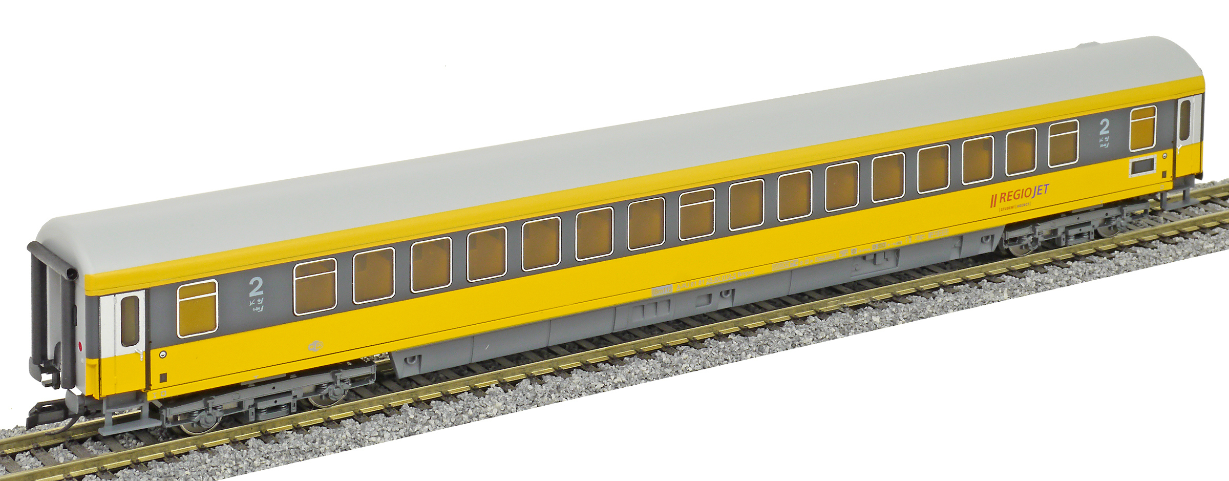 | rychlíkový vůz v barevném schematu „RegioJet“ 2. tř. |