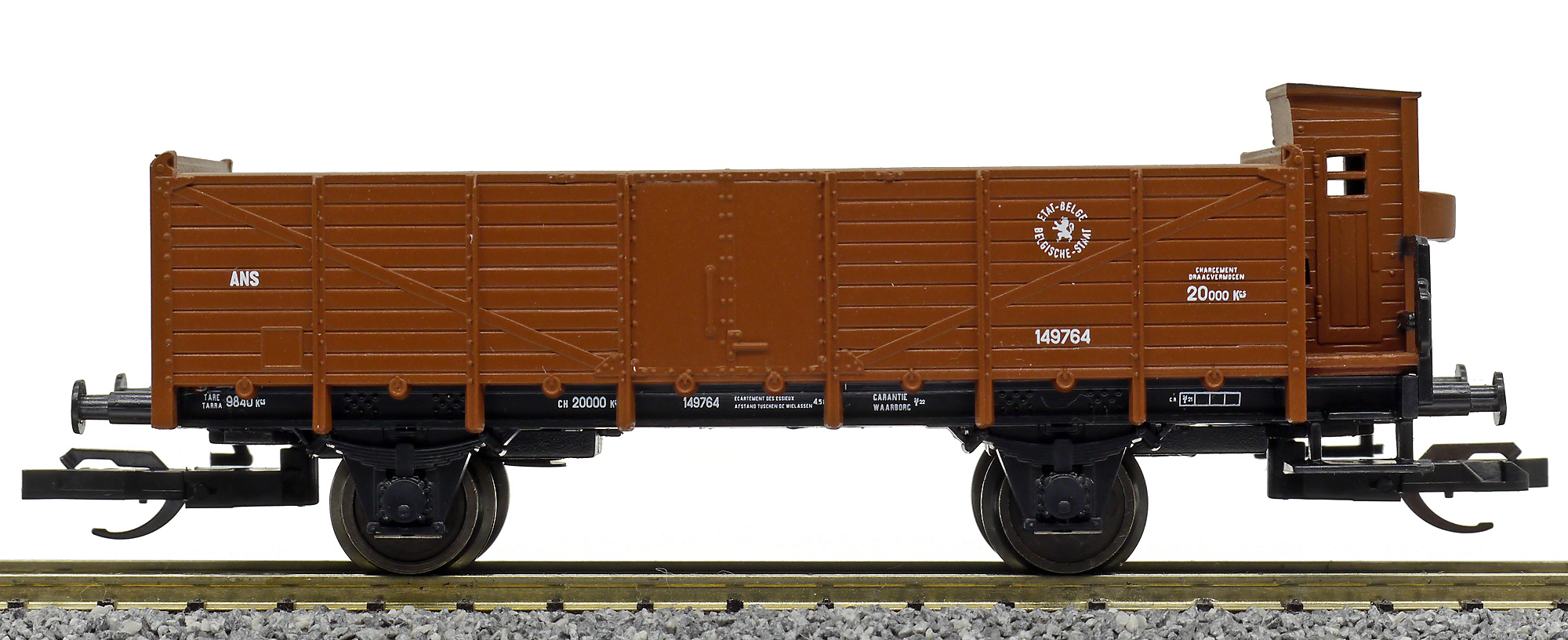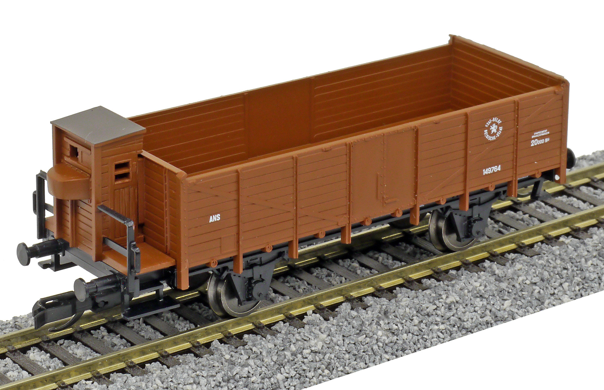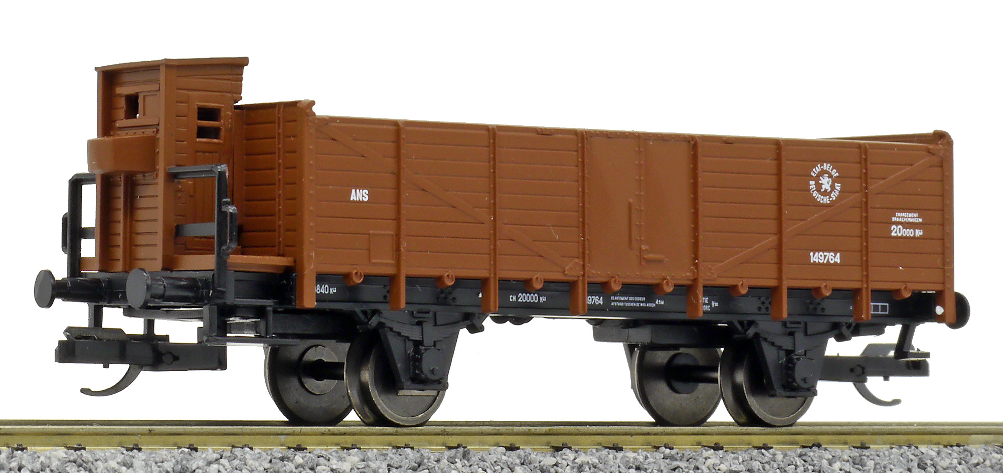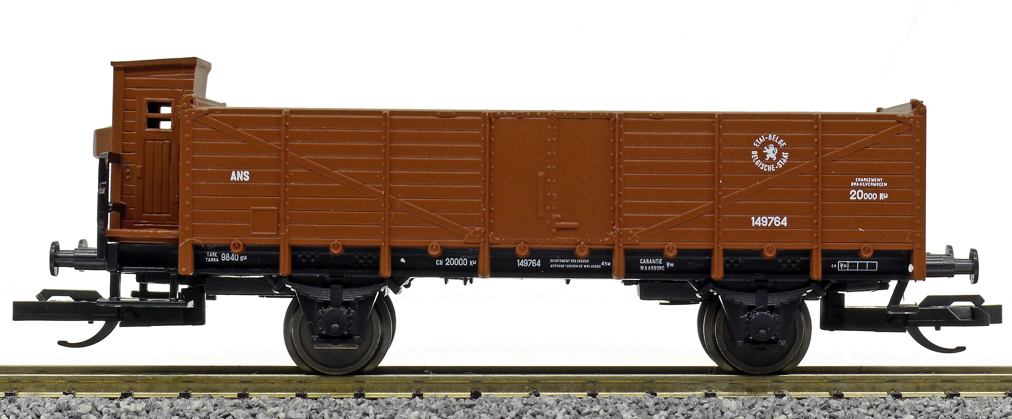 | otevřený nákladní vůz červenohnědý s brzdařskou budkou |