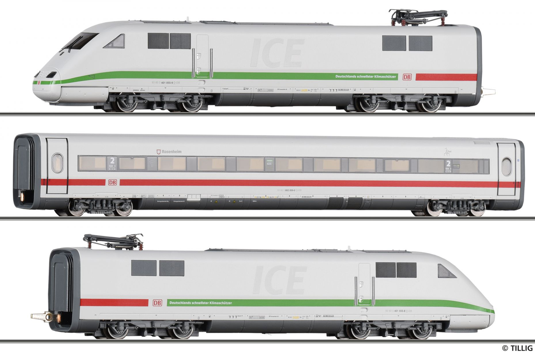 | třídílný set ICE-1 „Redesign“ složený se dvou koncových vozů a jednoho vloženého 2. tř. |