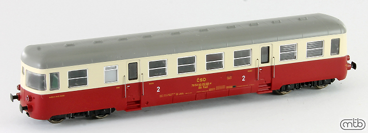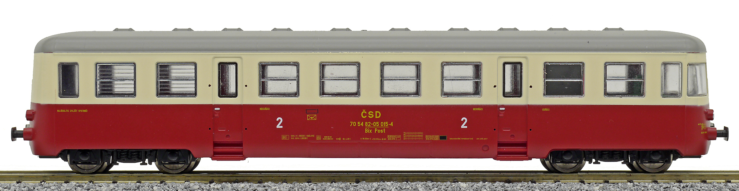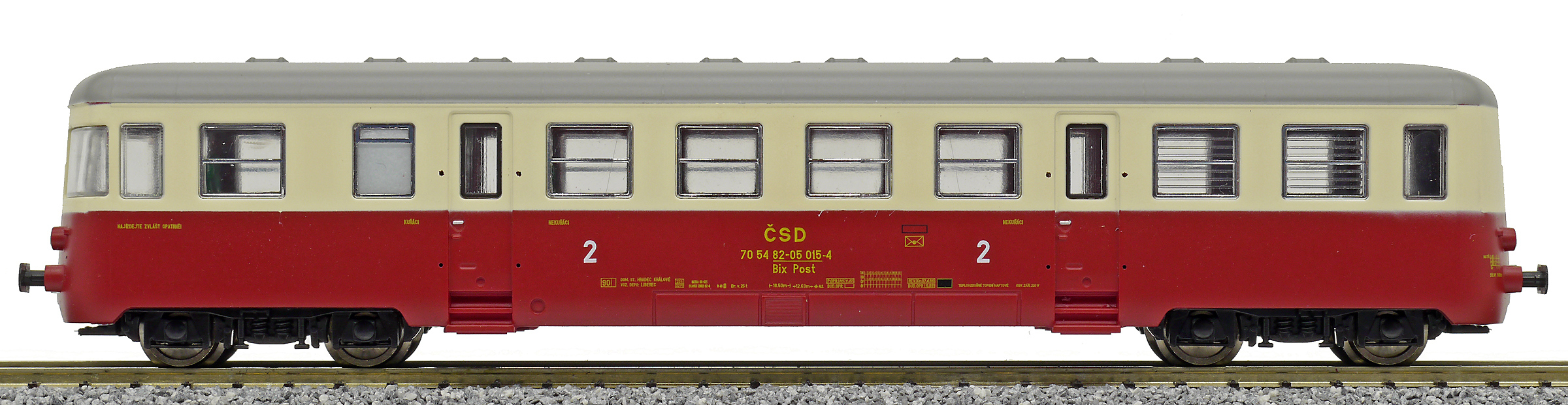 | osobní vůz červený-slonová kost s šedou střechou s poštovním oddílem 2. tř. |