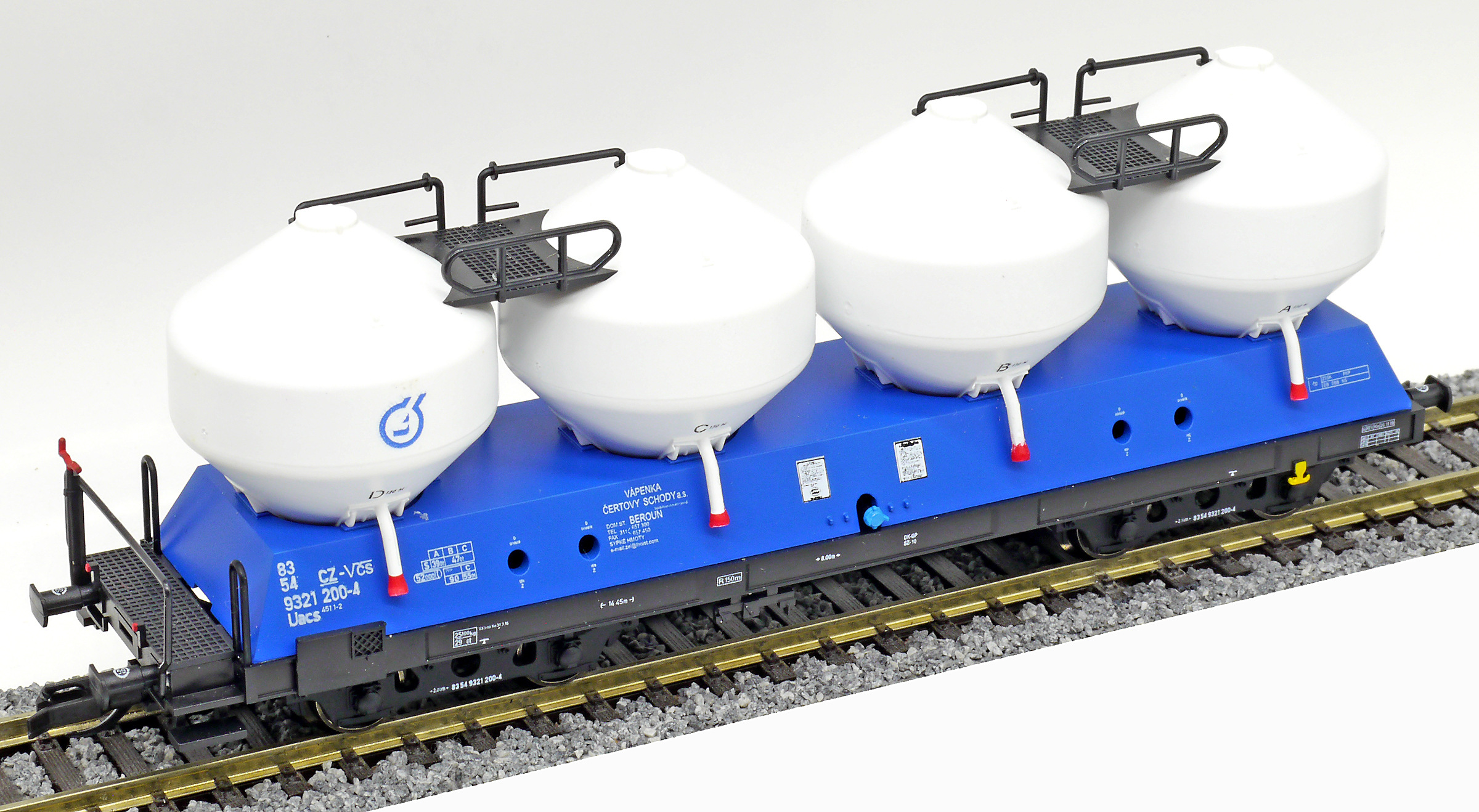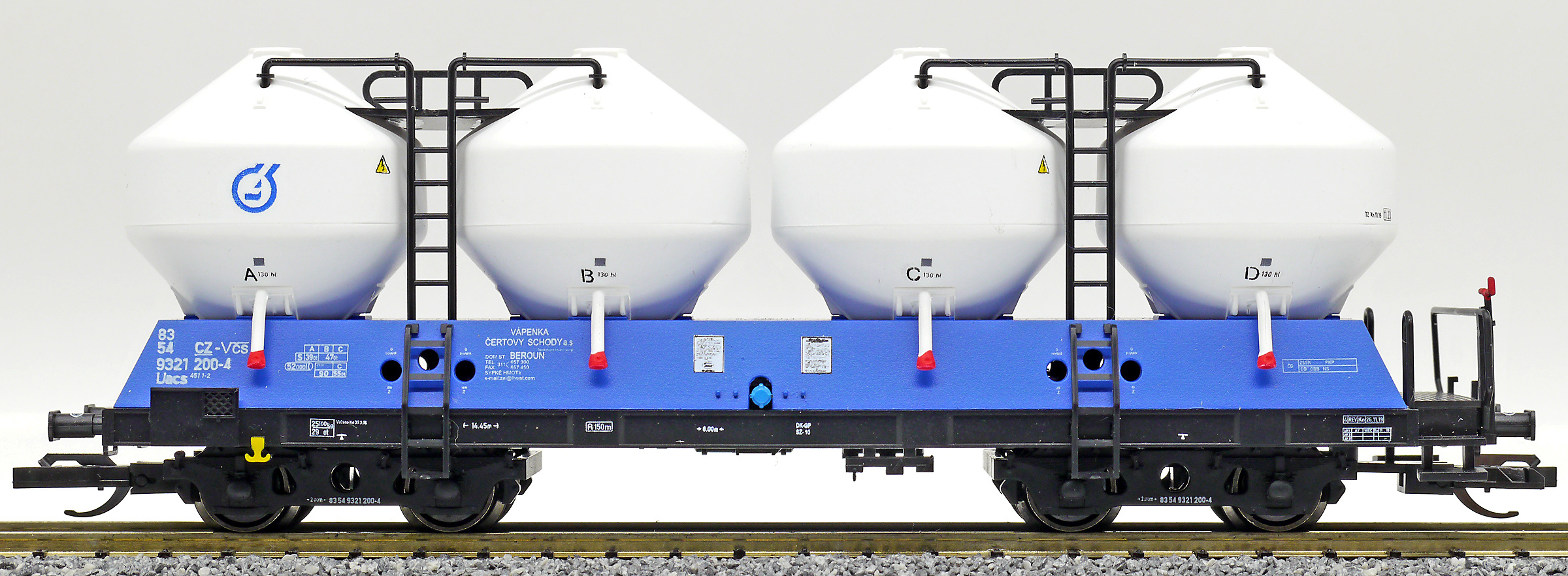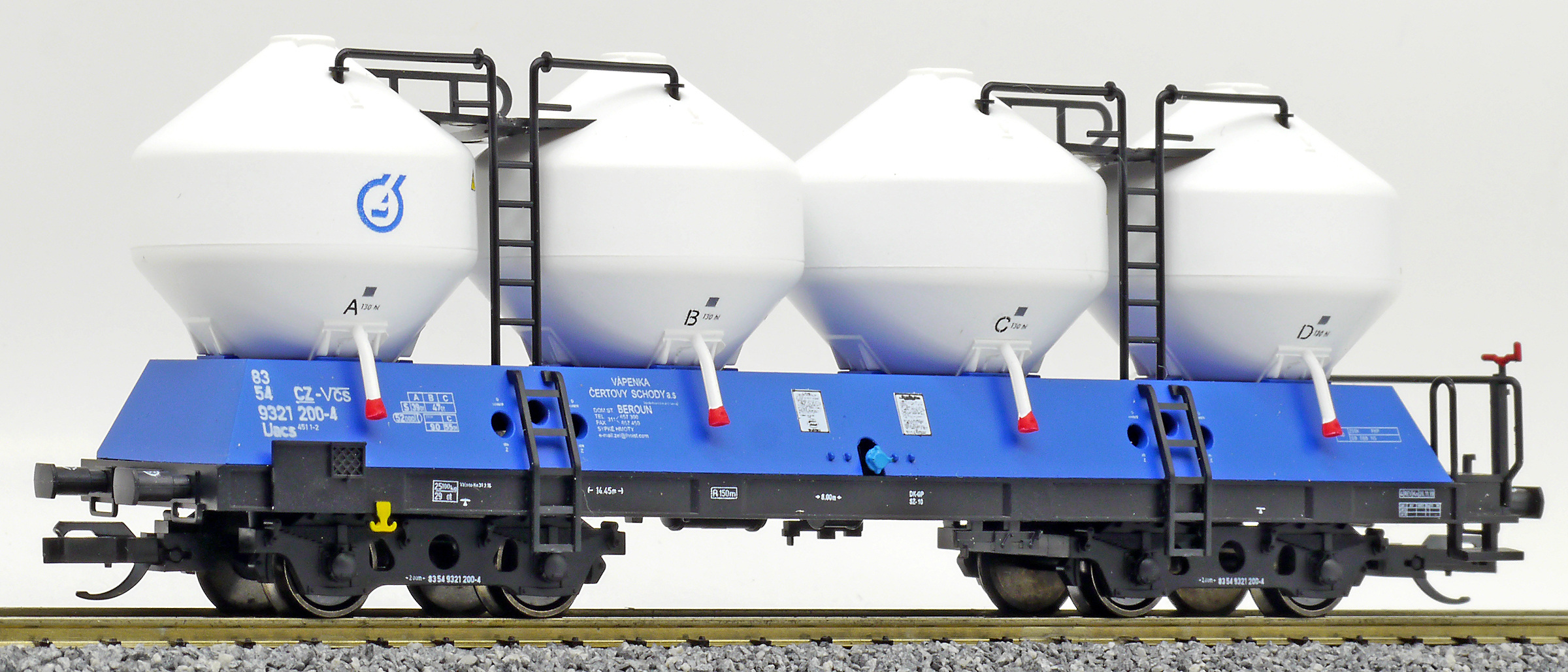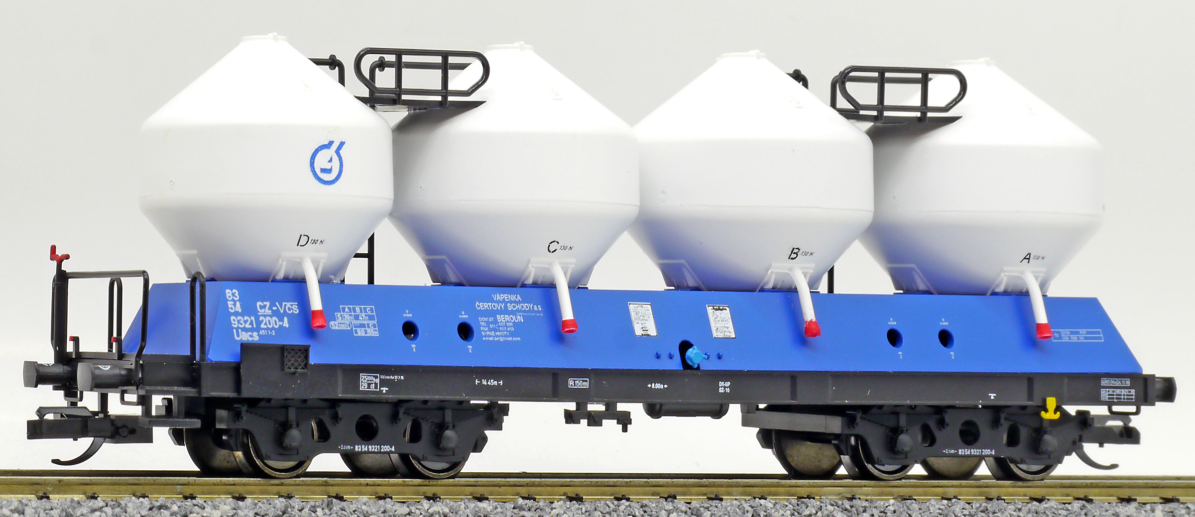 | nákladní samovýsypný vůz modrý s bílými nádobami „Vápenka Čertovy schody“ |