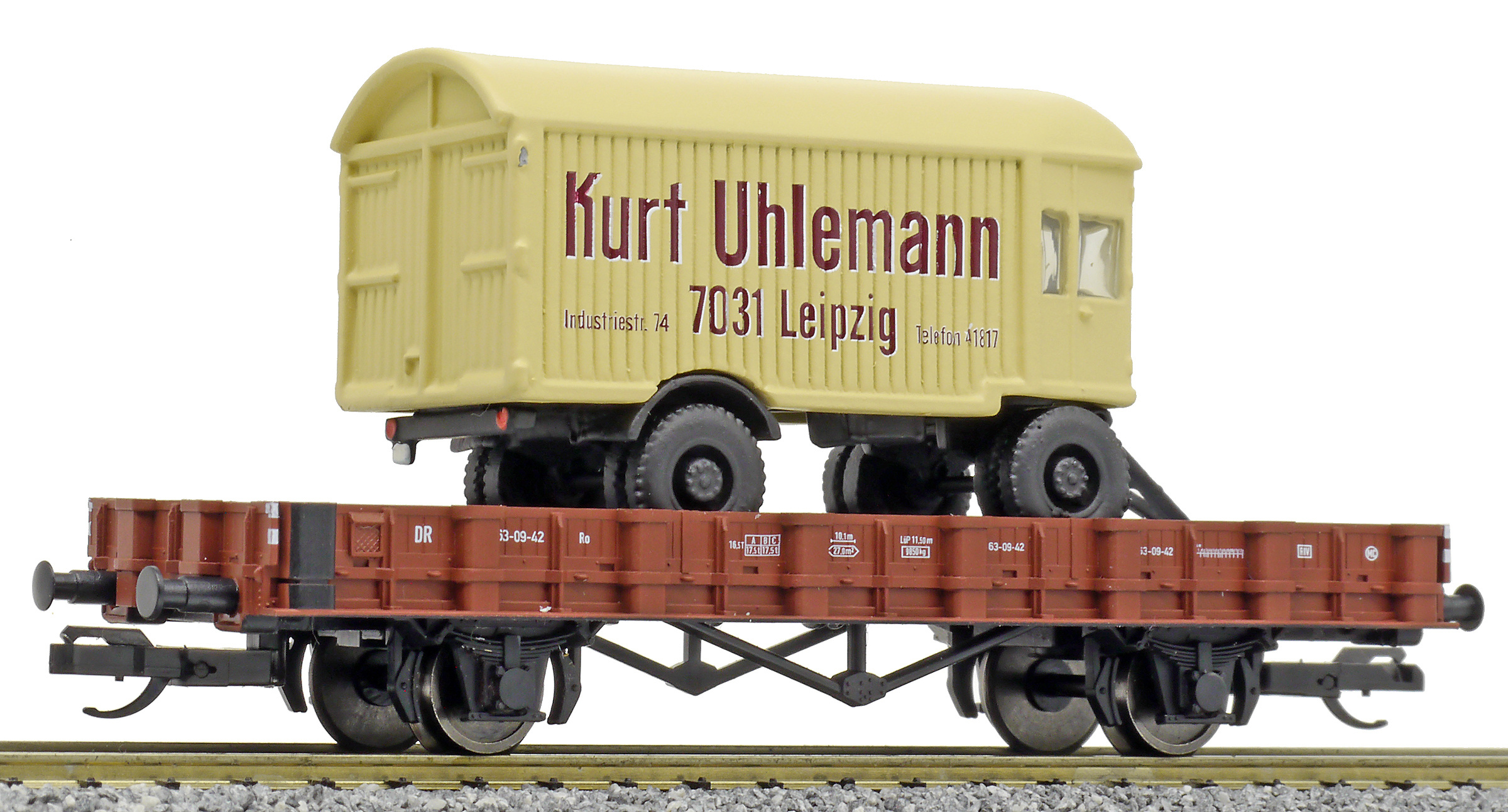 | nízkostěnný vůz červenohnědý s nákladním přívěsem „Kurt Uhlemann“ |