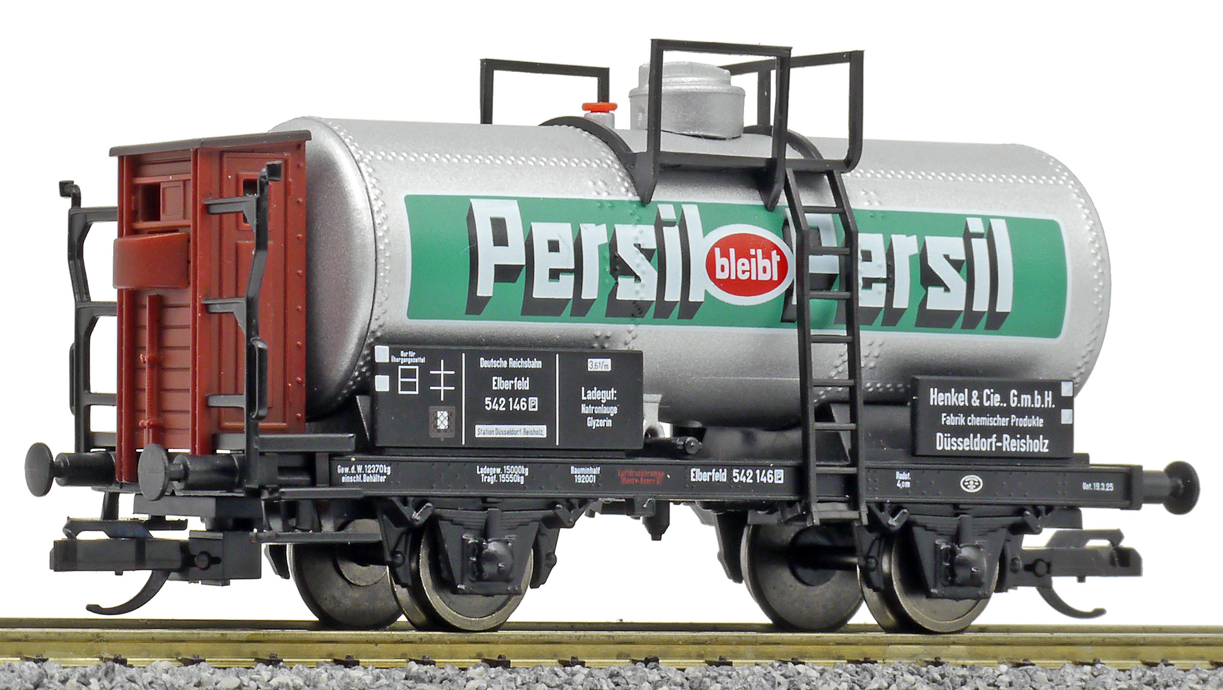 | kotlový nákladní vůz stříbrný s brzdařskou budkou „Persil“ |