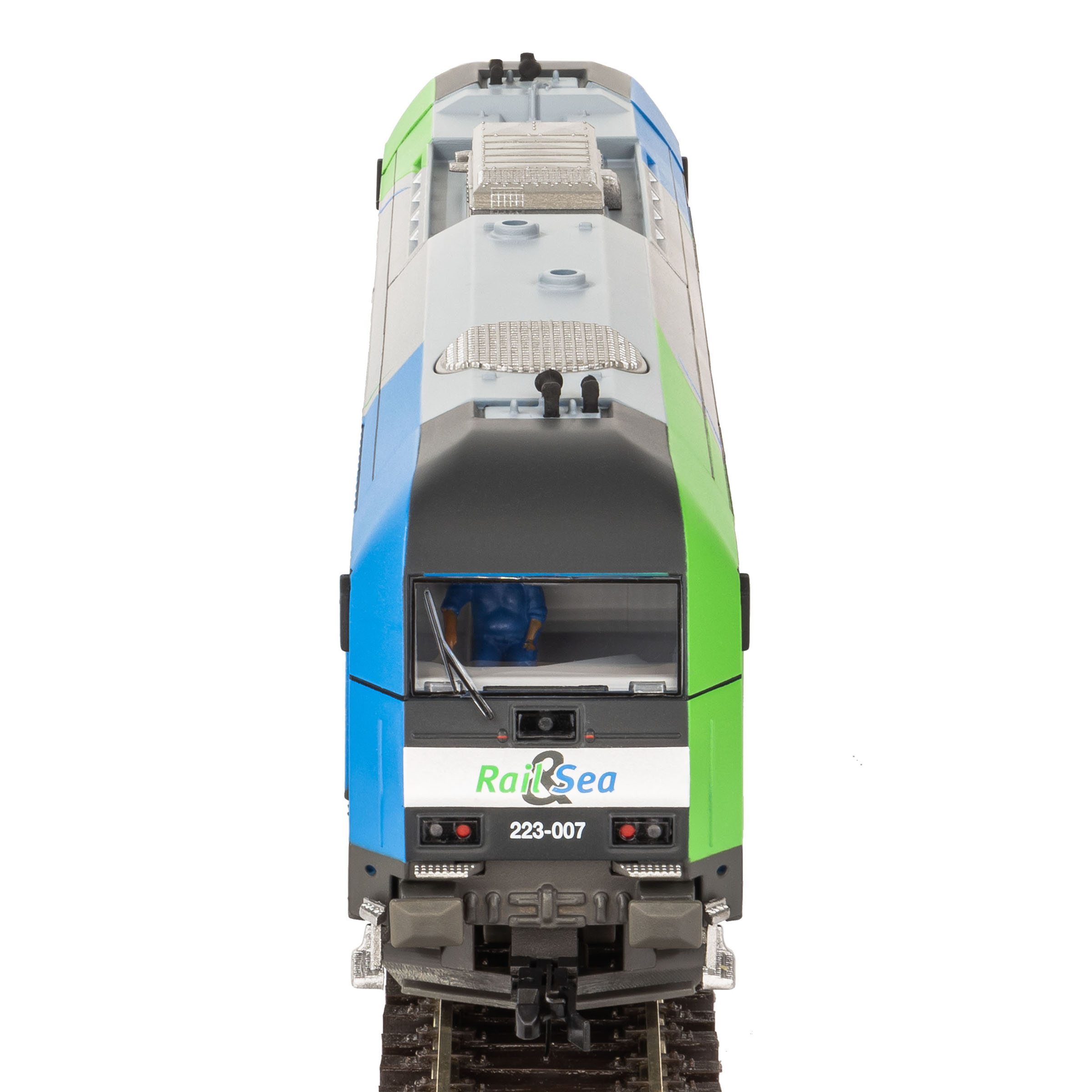 Popis   dieselová lokomotiva v modrém-zeleném barevném schematu „Rail & Sea“