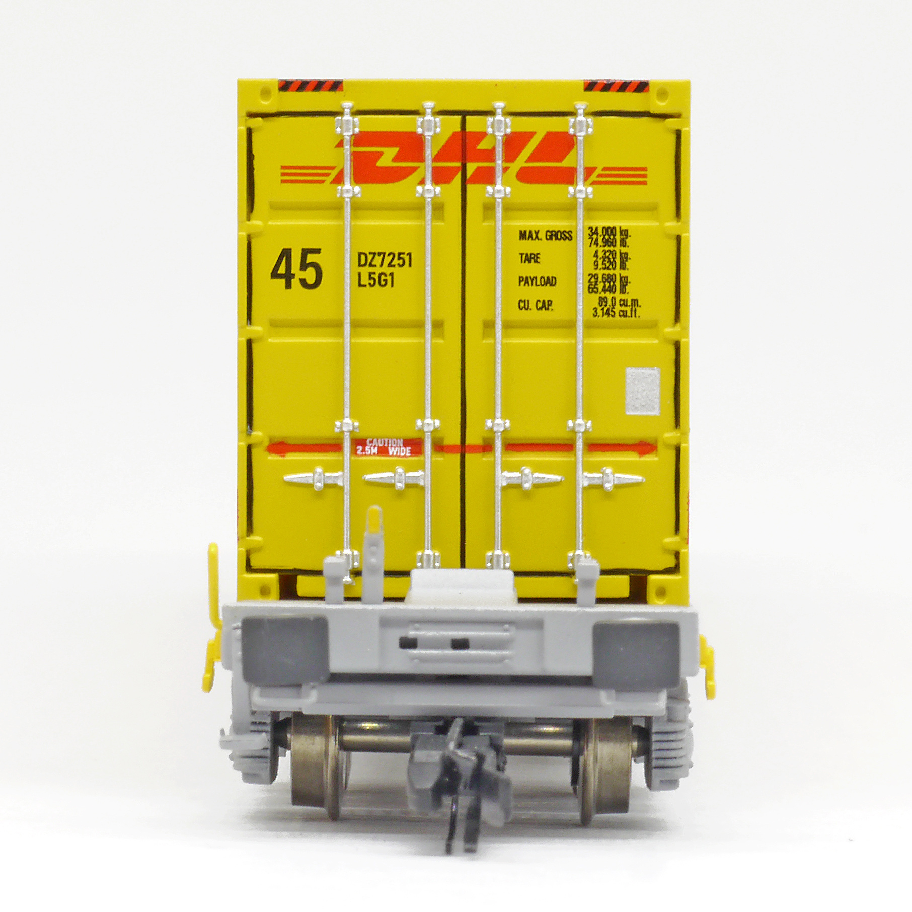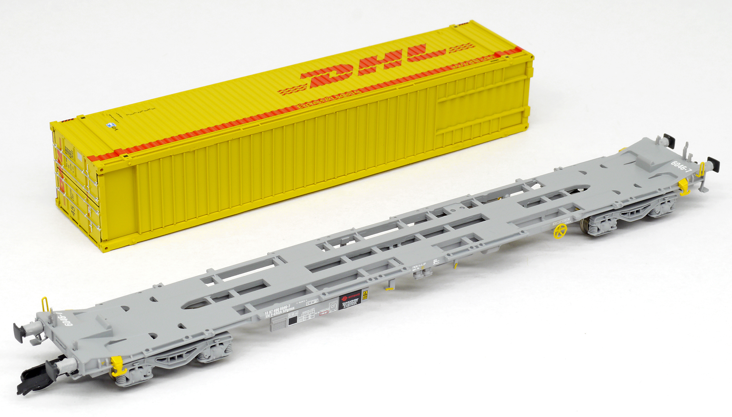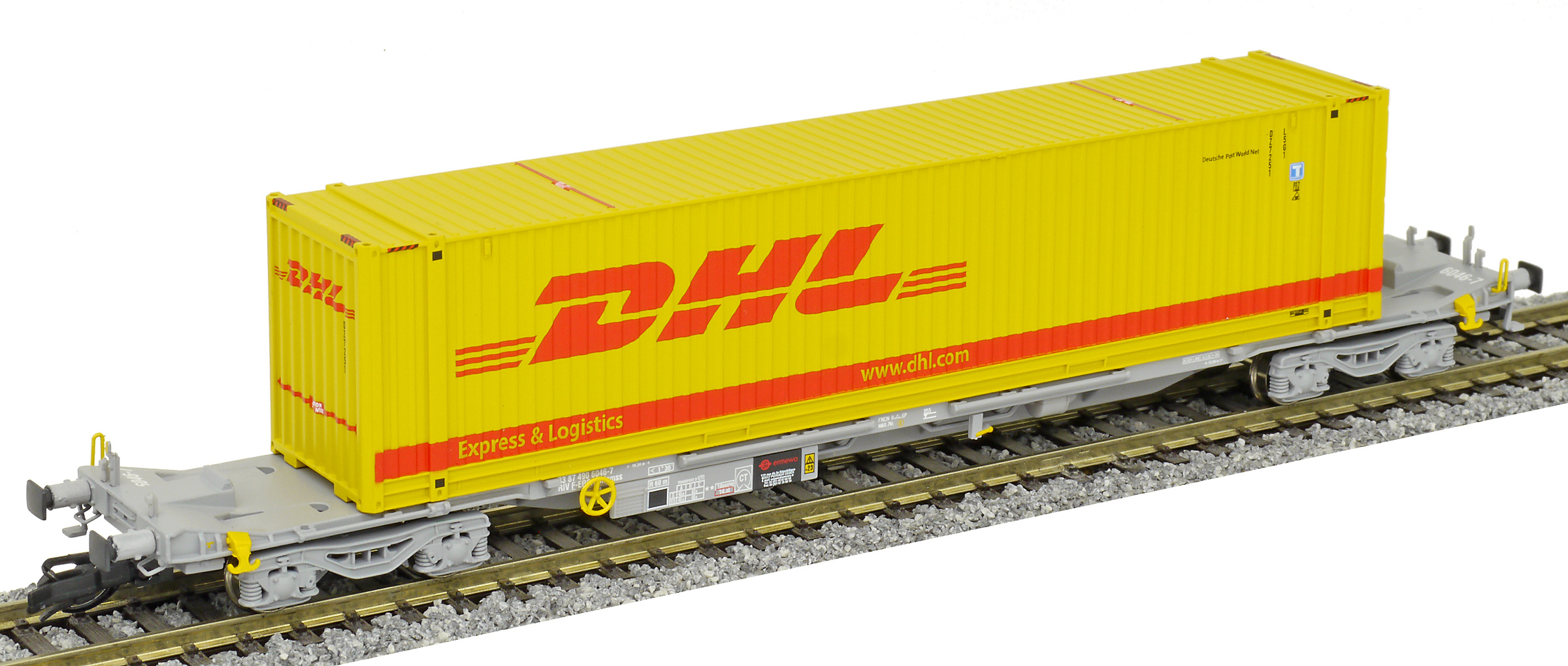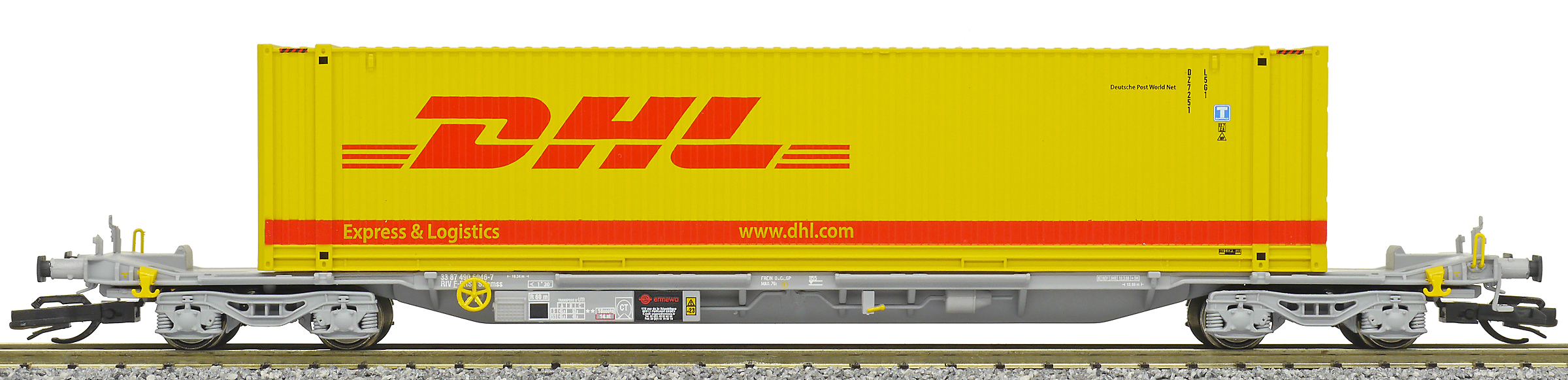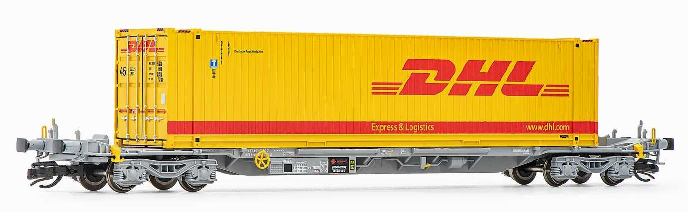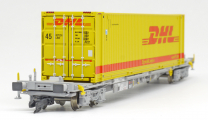 | kontejnerový vůz „IFA” šedý ložený 45' kontejnerem „DHL” |