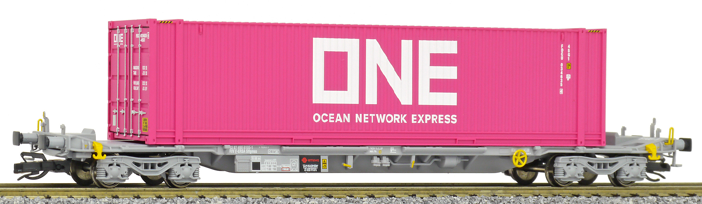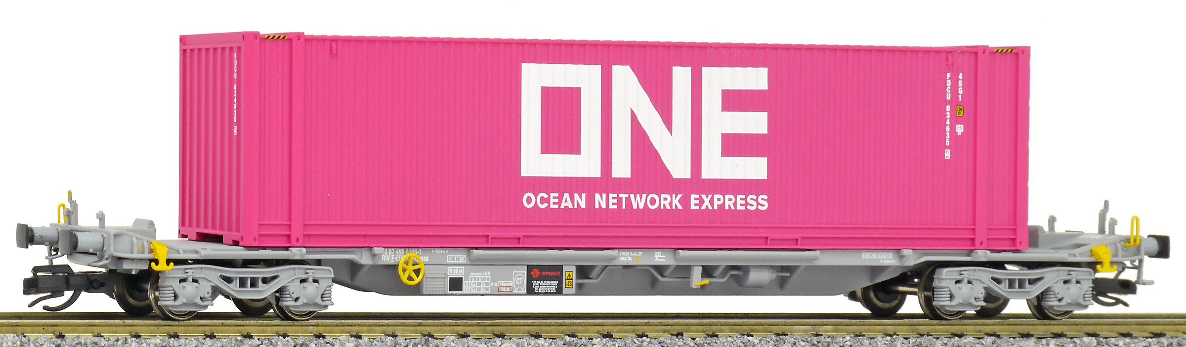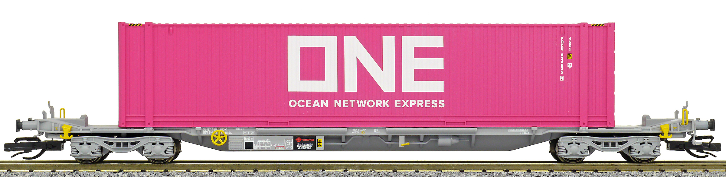 | kontejnerový vůz „IFA” šedý ložený 45' kontejnerem „ONE” |