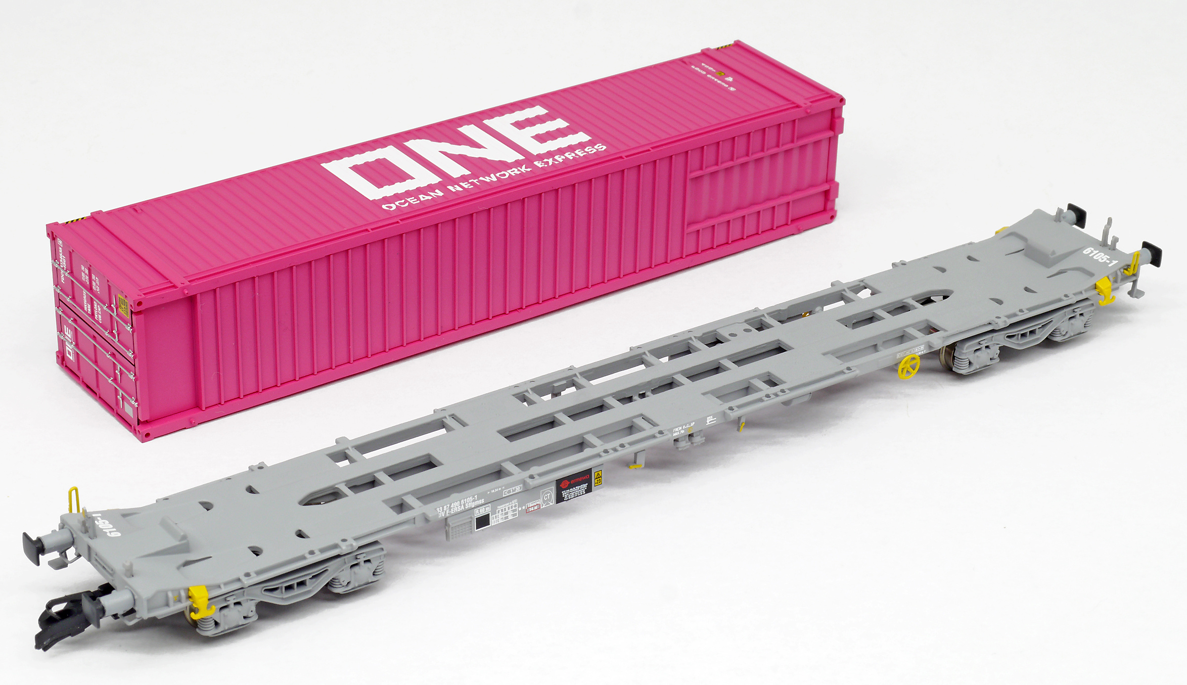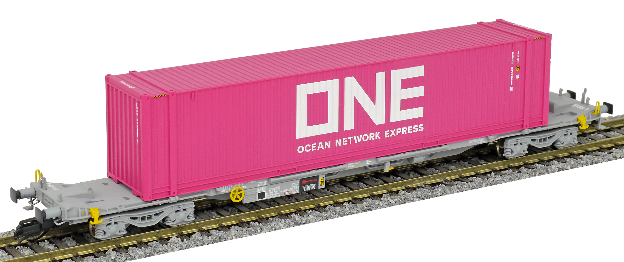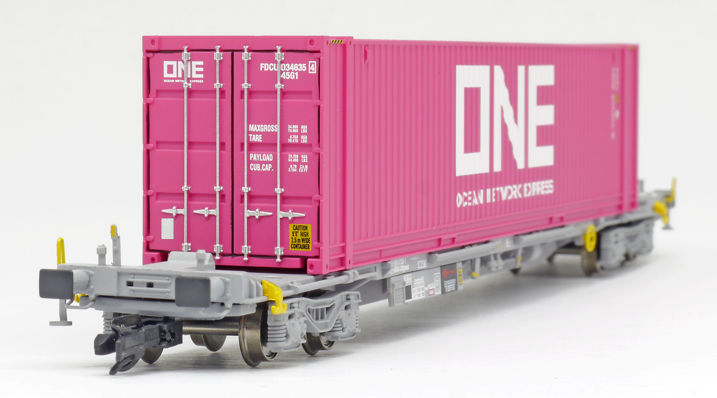 | kontejnerový vůz „IFA” šedý ložený 45' kontejnerem „ONE” |