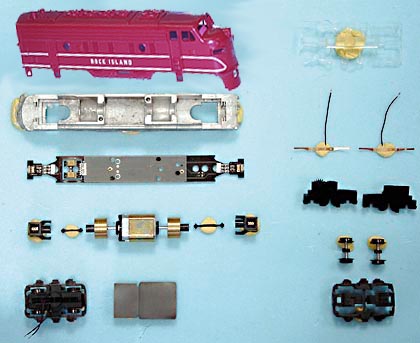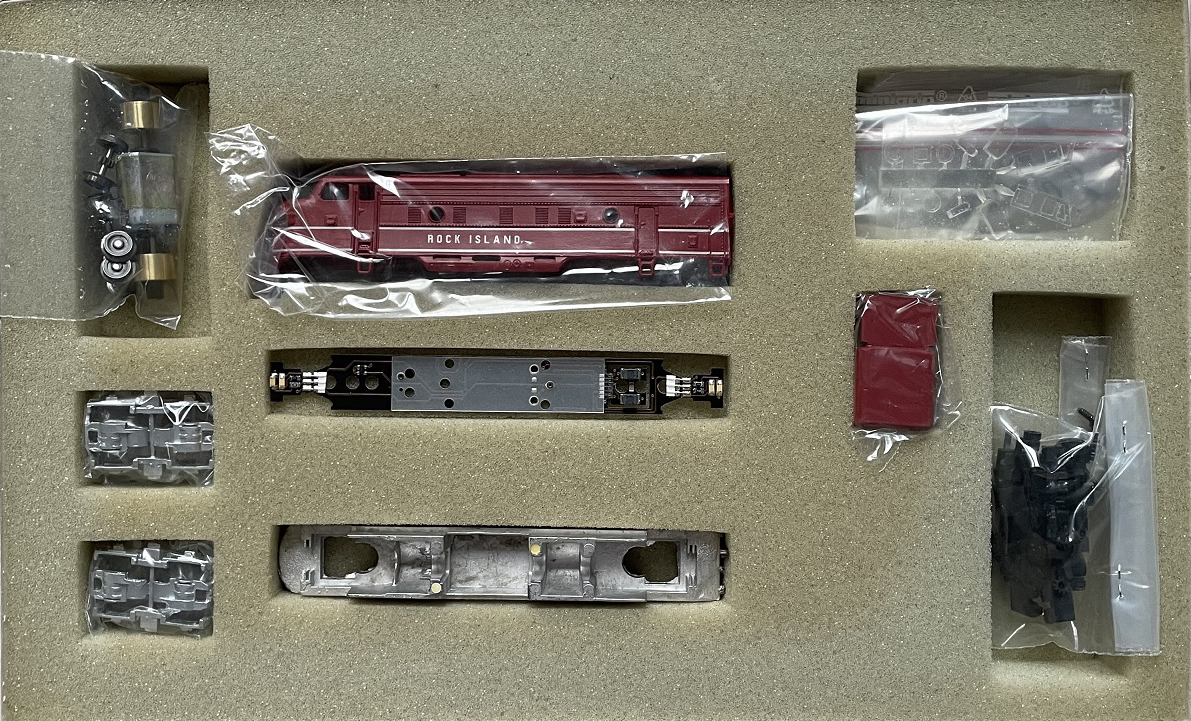 dieselová lokomotiva vínově červená „Rock Island“
