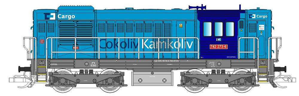 | dieselová lokomotiva v barevném schematu „ČD Cargo“ |