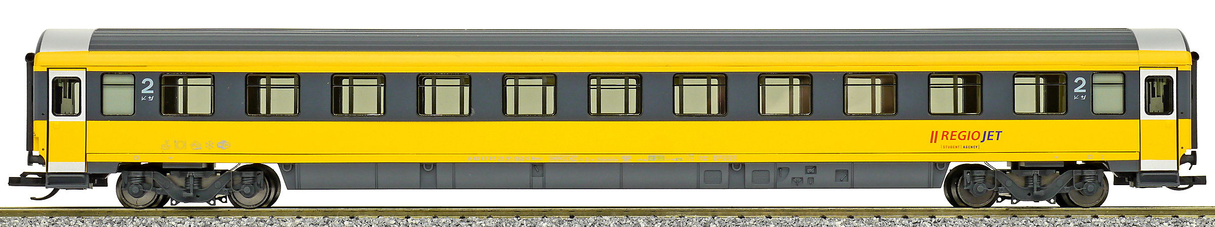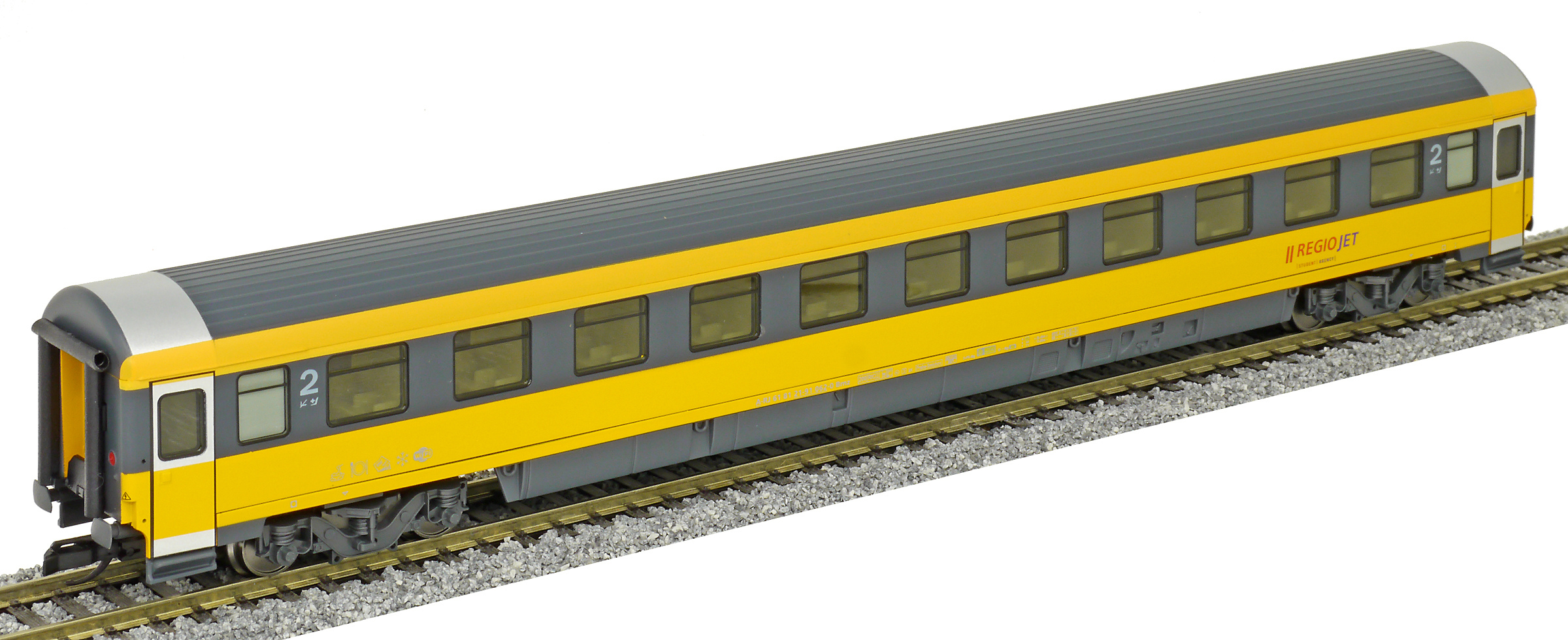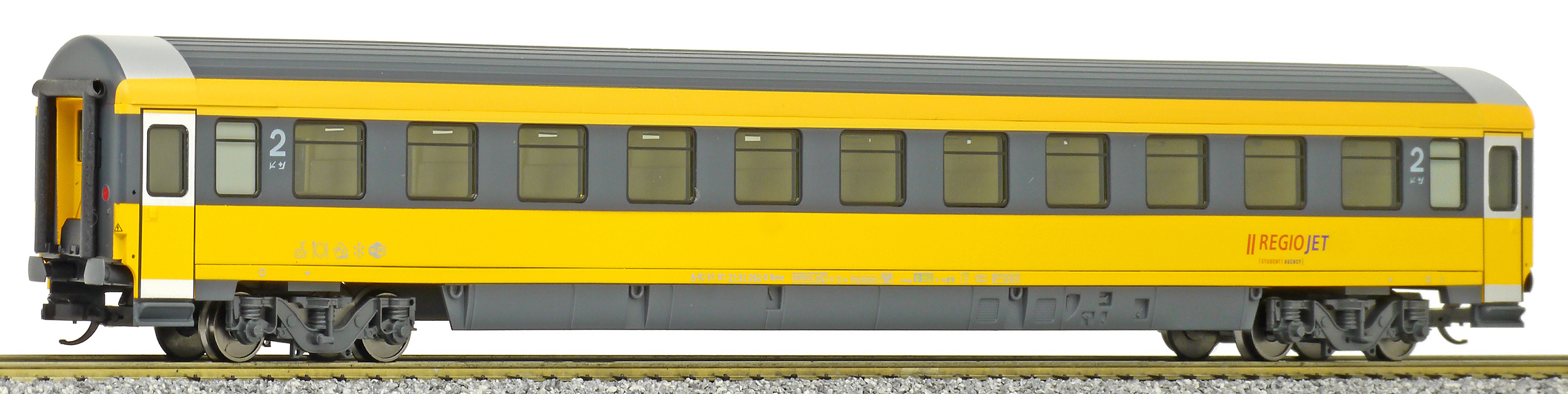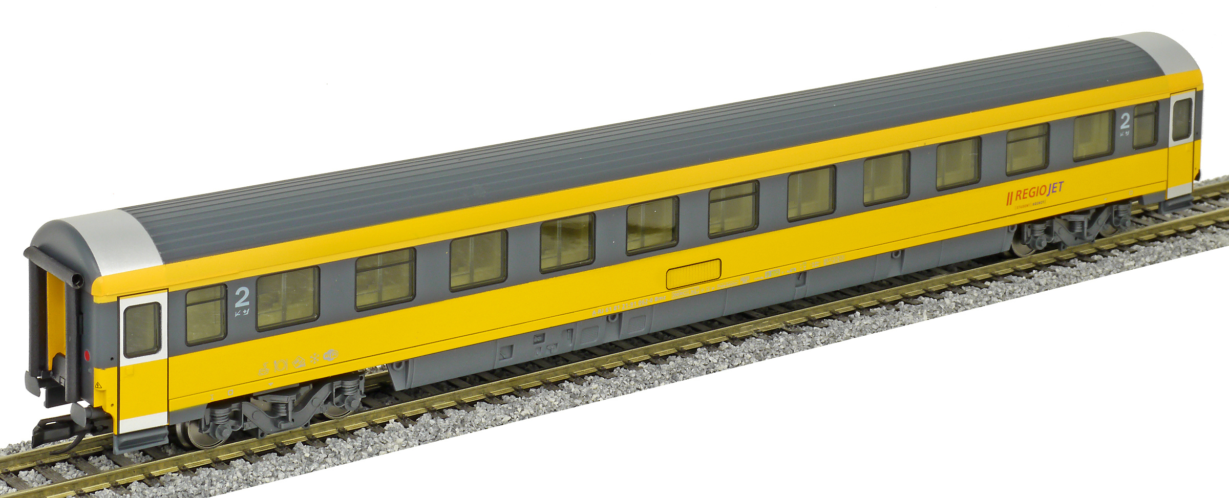 | rychlíkový vůz v barvách „RegioJet“ 2. tř. |