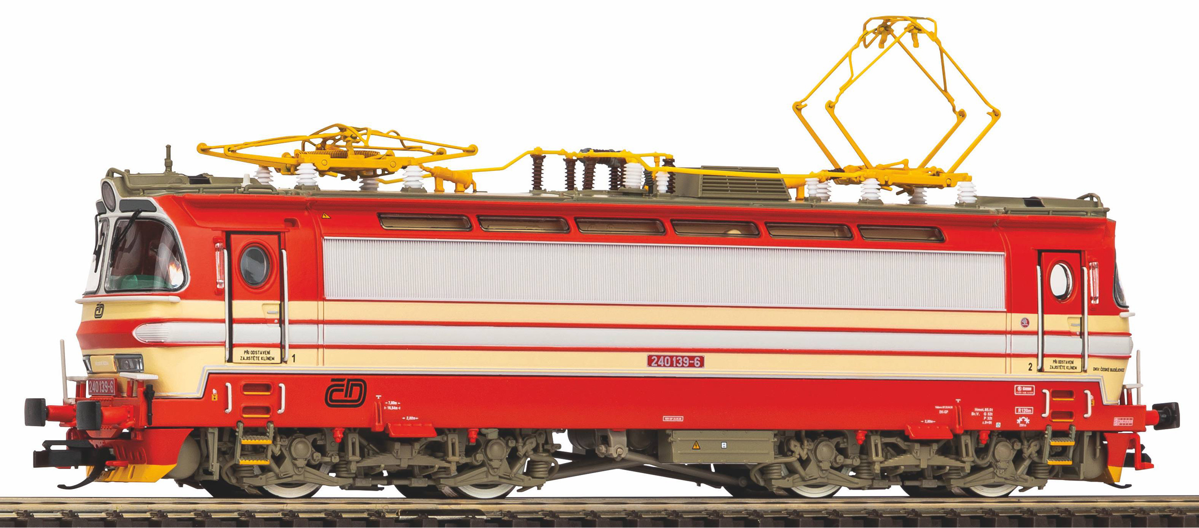 Popis   elektrická lokomotiva v barevné kombinaci červená-krémová, šedá střecha