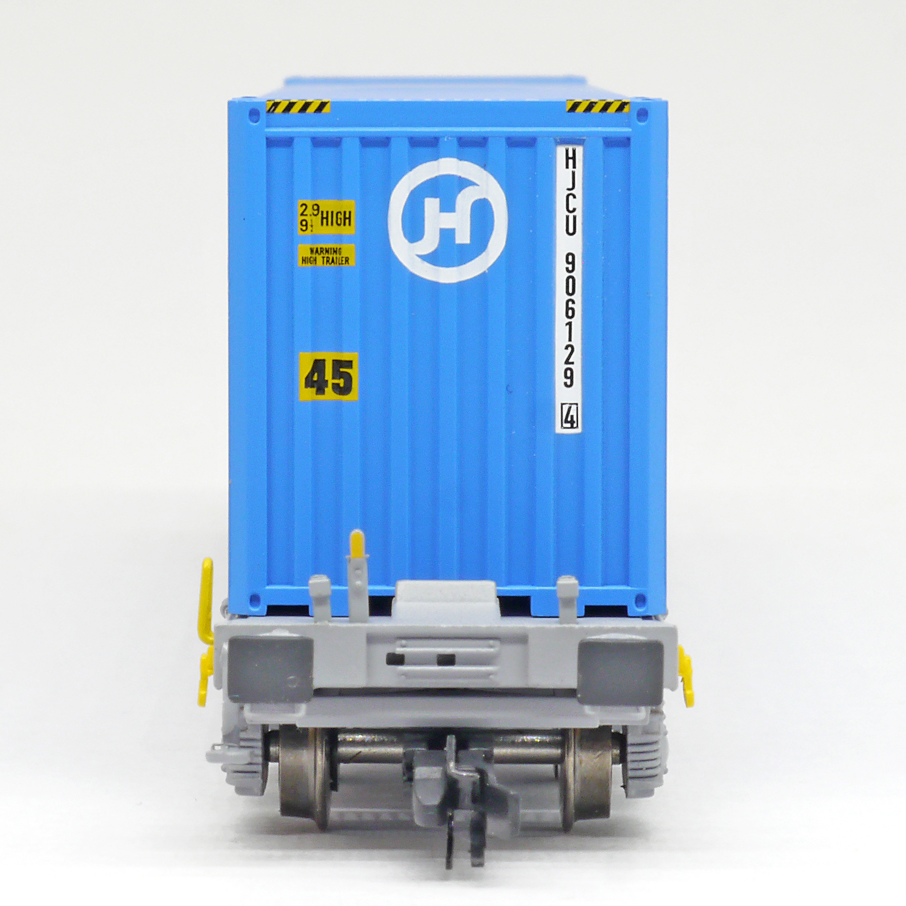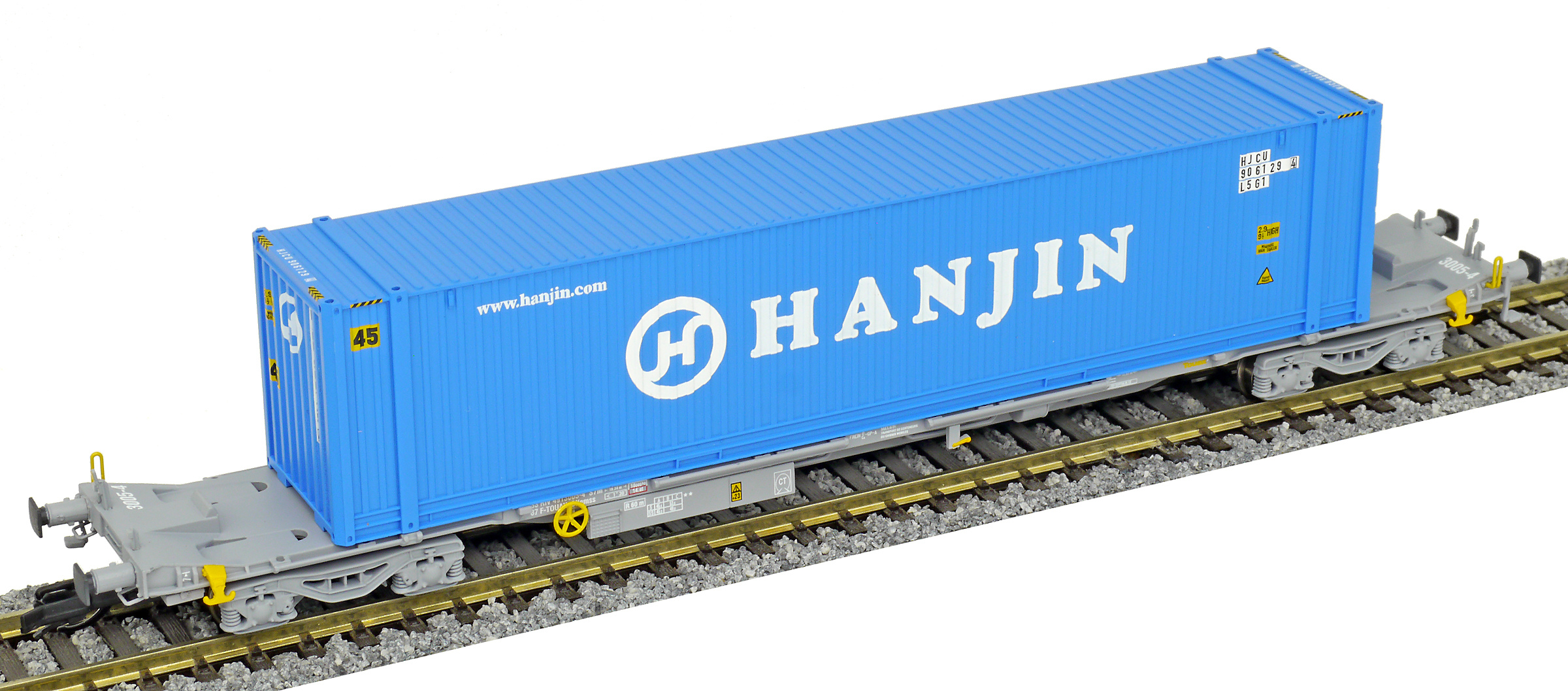 | kontejnerový vůz „IFA” šedý ložený 45' kontejnerem „HANJIN” |