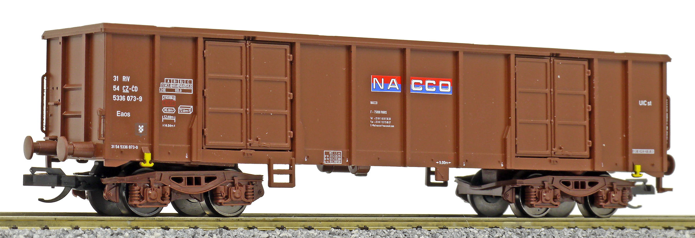 měřítko 1:120 - rozchod kolejí 12 mm kinematika krátkého spřáhla (KKK) podle normy NEM 358 117 mm - celková délka modelu přes nárazníky 4 - celkový počet náprav nebo rozložení náprav 130 g - hmotnost brutto - model včetně prodejního obalu