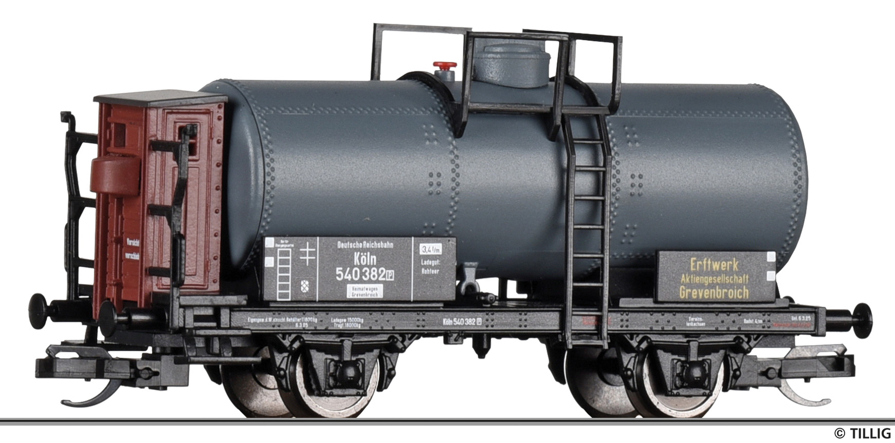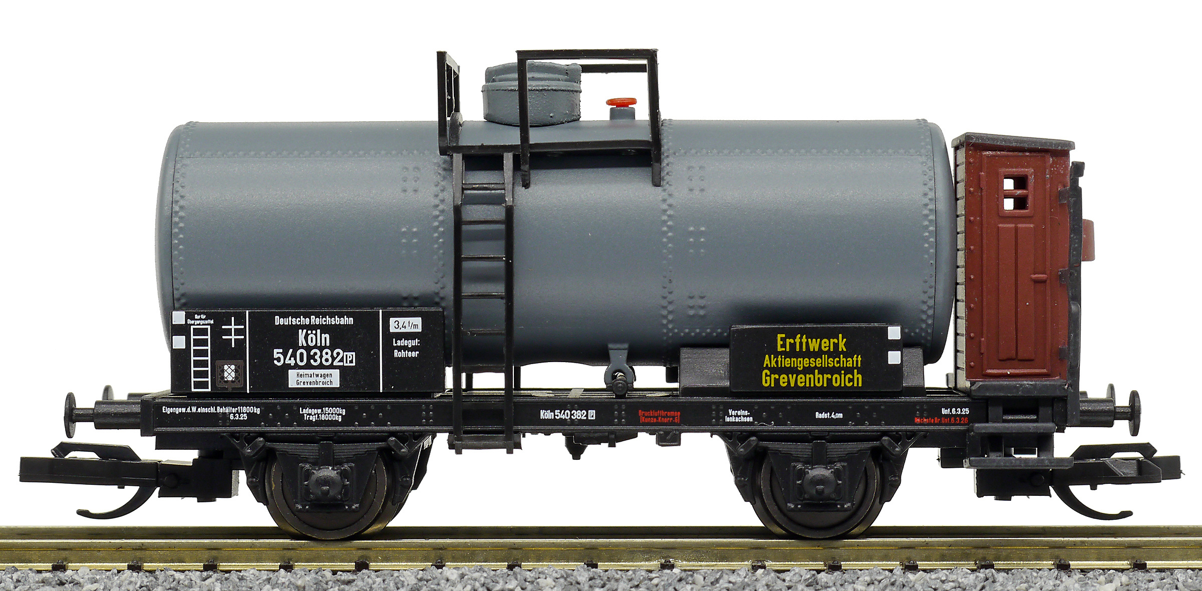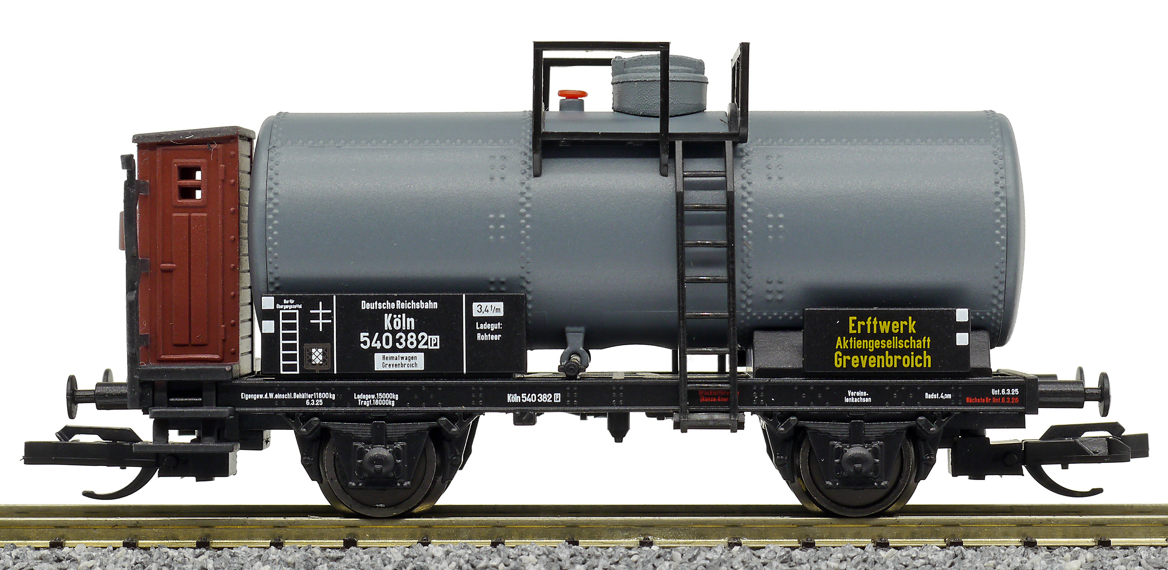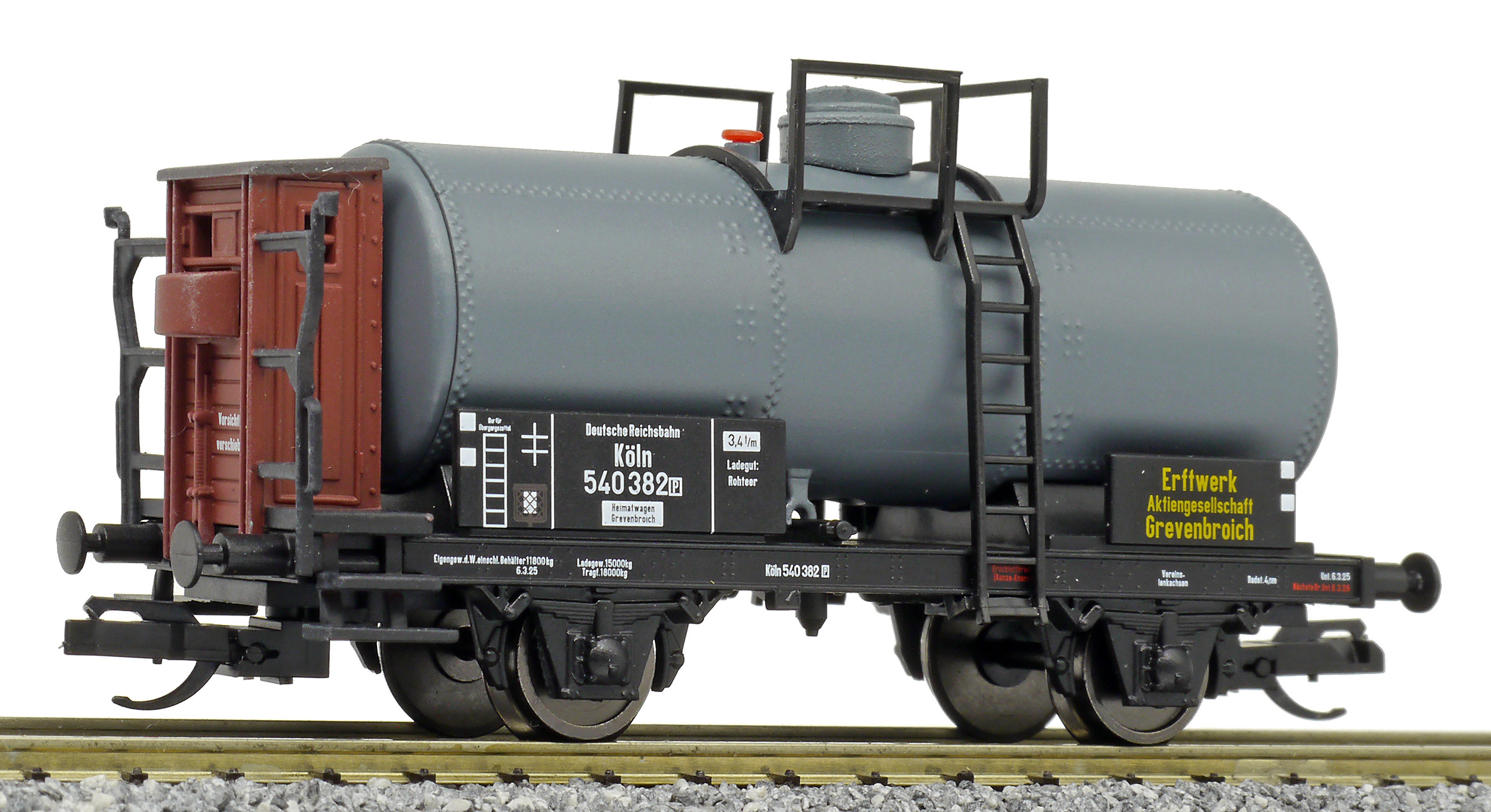 | kotlový vůz tmavě šedý s brzdařskou budkou „Erftwerk AG, Grevenbroich“ |