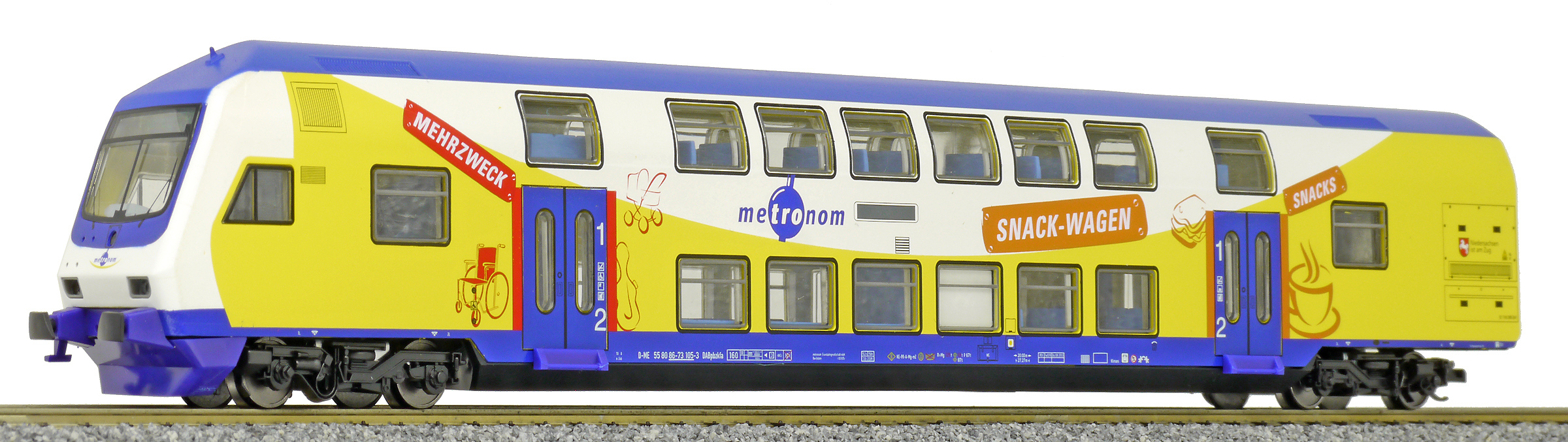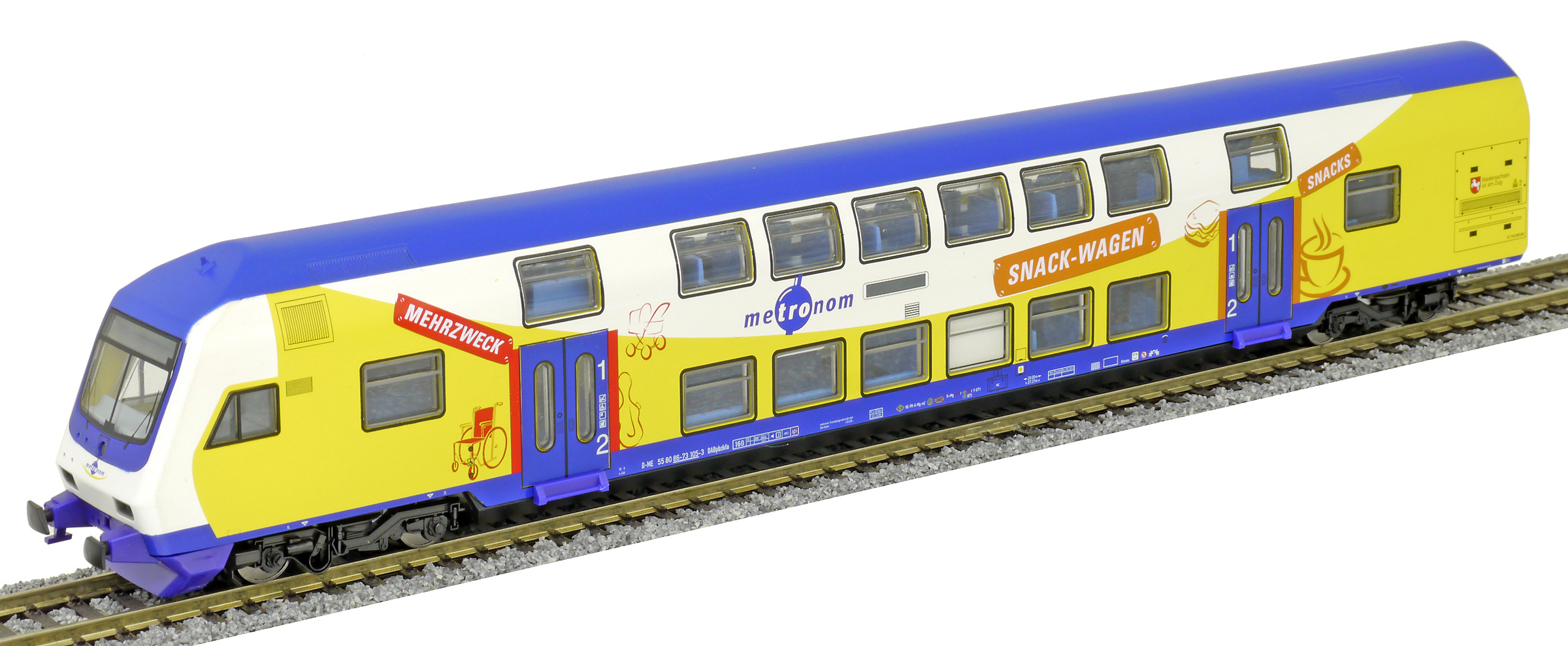 | řídící patrový vůz 1./2. tř. v barevném schematu „metronom Eisenbahngesellschaft“ |