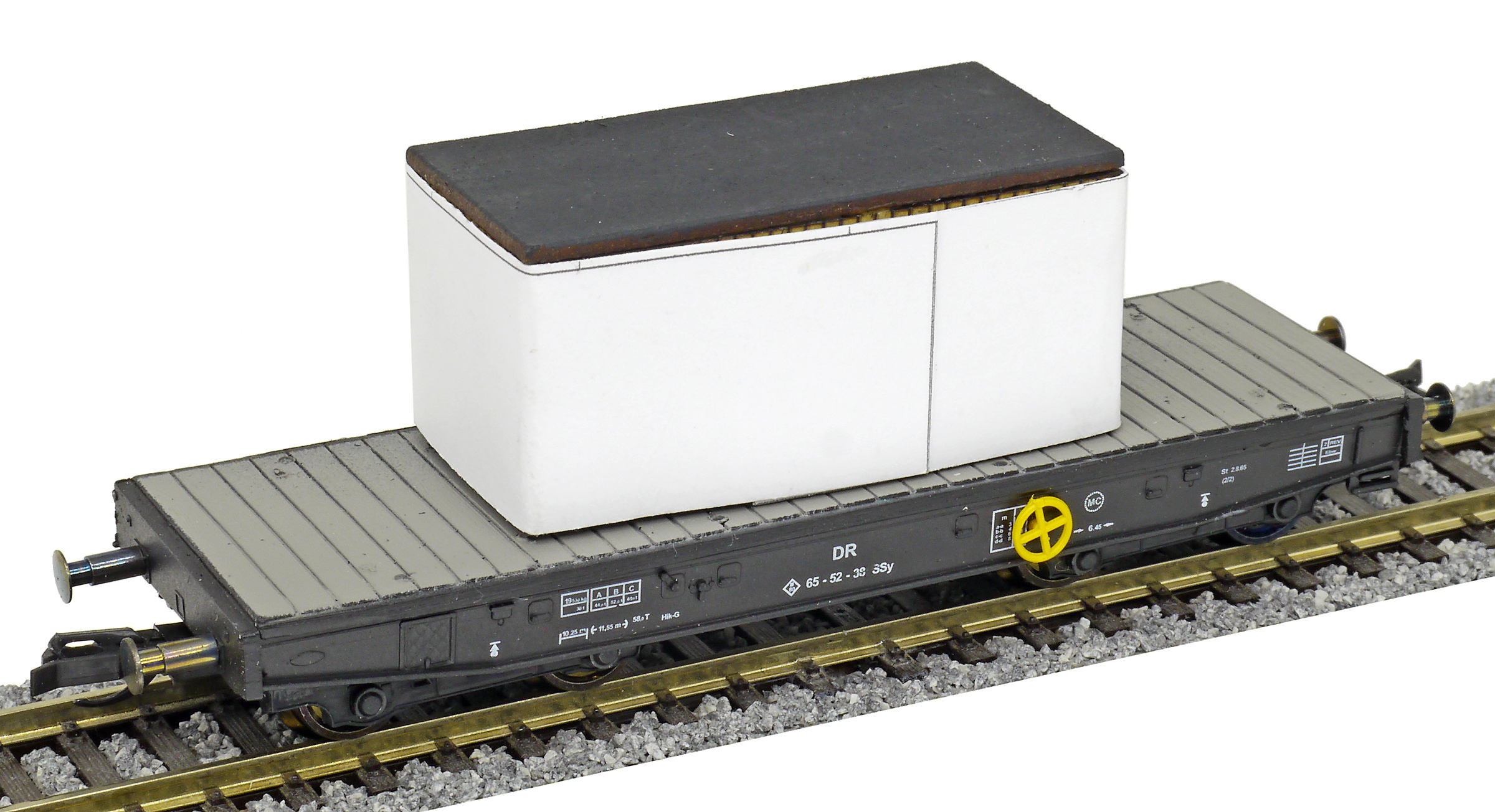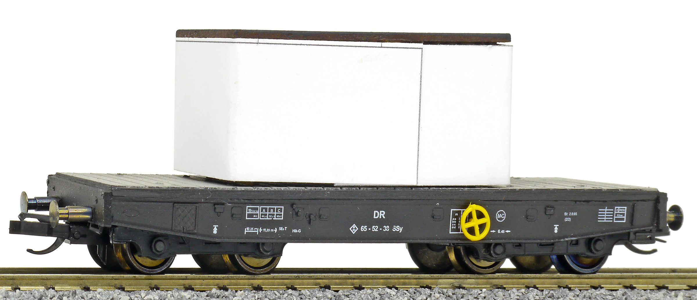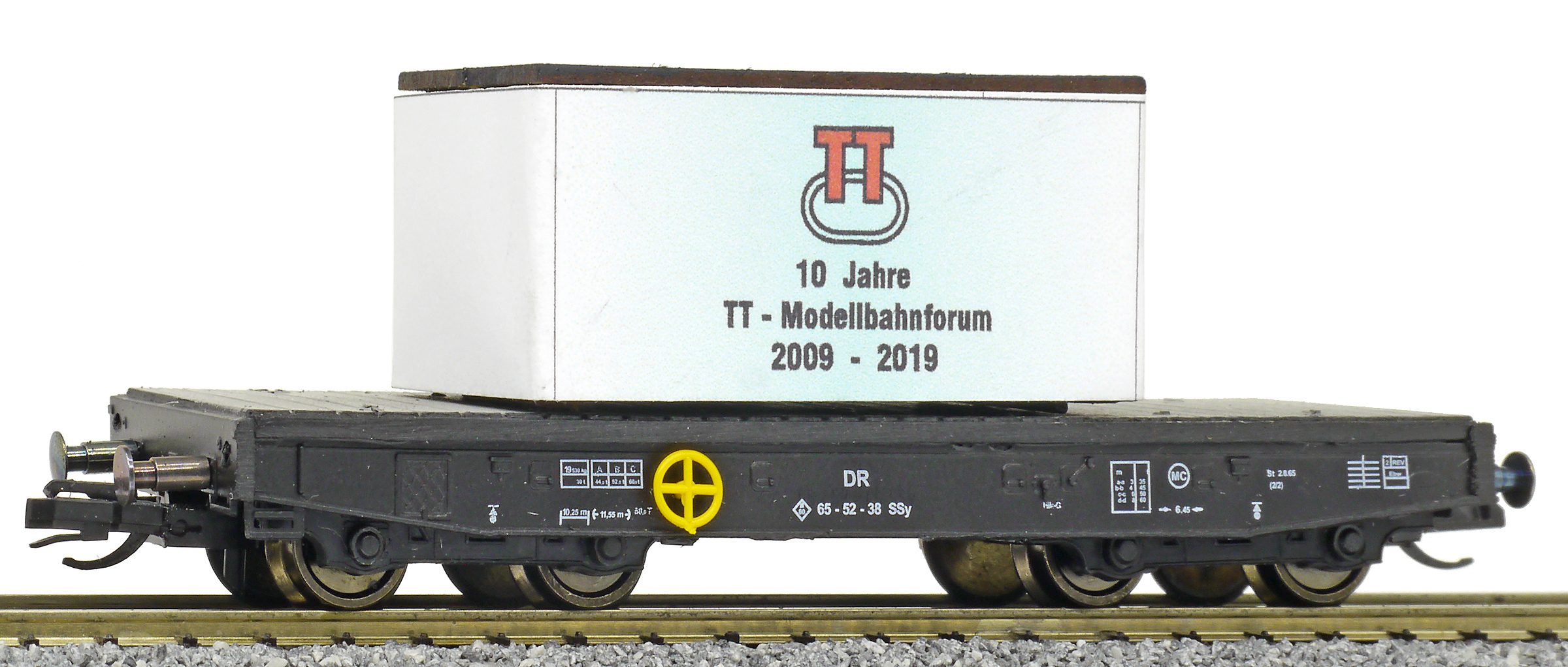| plošinový nákladní vůz černý s nákladem bedny „10 Jahre TT-Modellbahnforum 2009 - 2019“ |