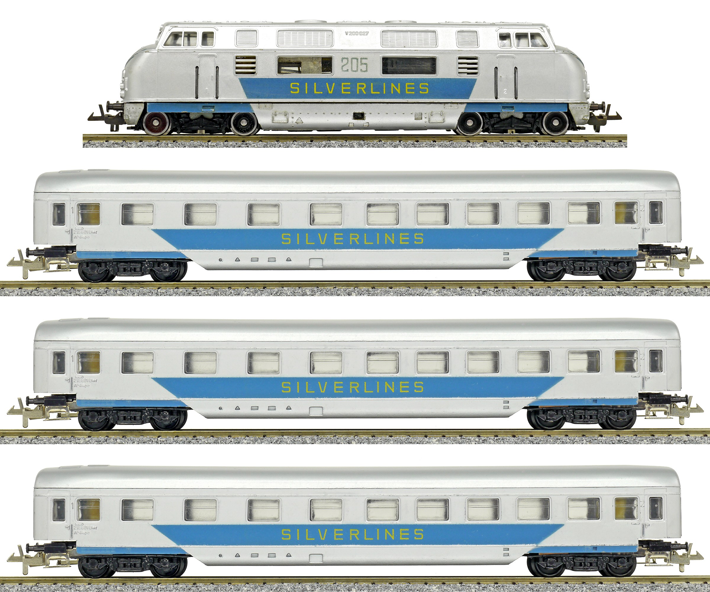 | set dieselové lokomotivy V200 a tří rychlíkových vozů „SILVERLINES“ |