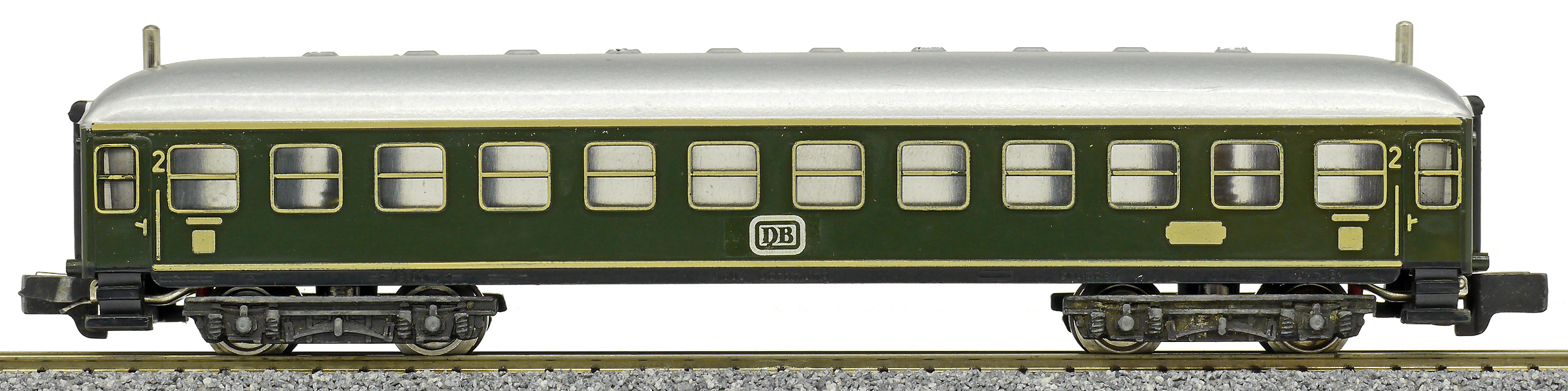 rychlíkový vůz zelený s šedou střechou 2. tř.