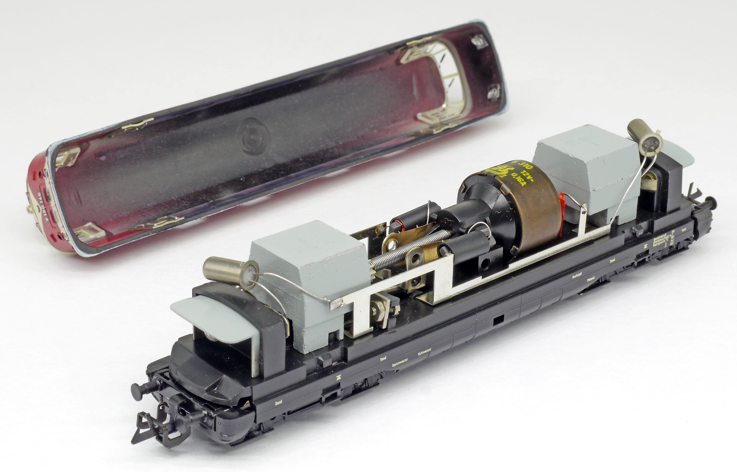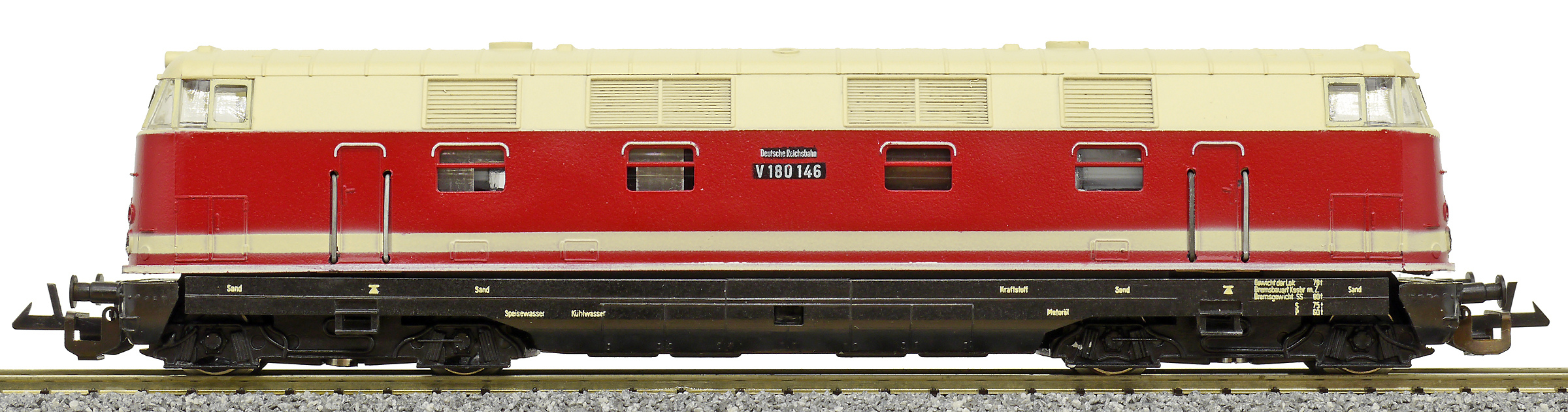 měřítko 1:120 - rozchod kolejí 12 mm osvětlení - 2 reflektory přepínatelné podle směru jízdy osvětlení - žárovky 4 hnané nápravy 1 bandážovaná náprava nenormované uchycení spřáhla digitalizace možná jen s úpravami 152 mm - celková délka modelu přes nárazníky 4 - celkový počet náprav nebo rozložení náprav 193 g - hmotnost netto - pouze model