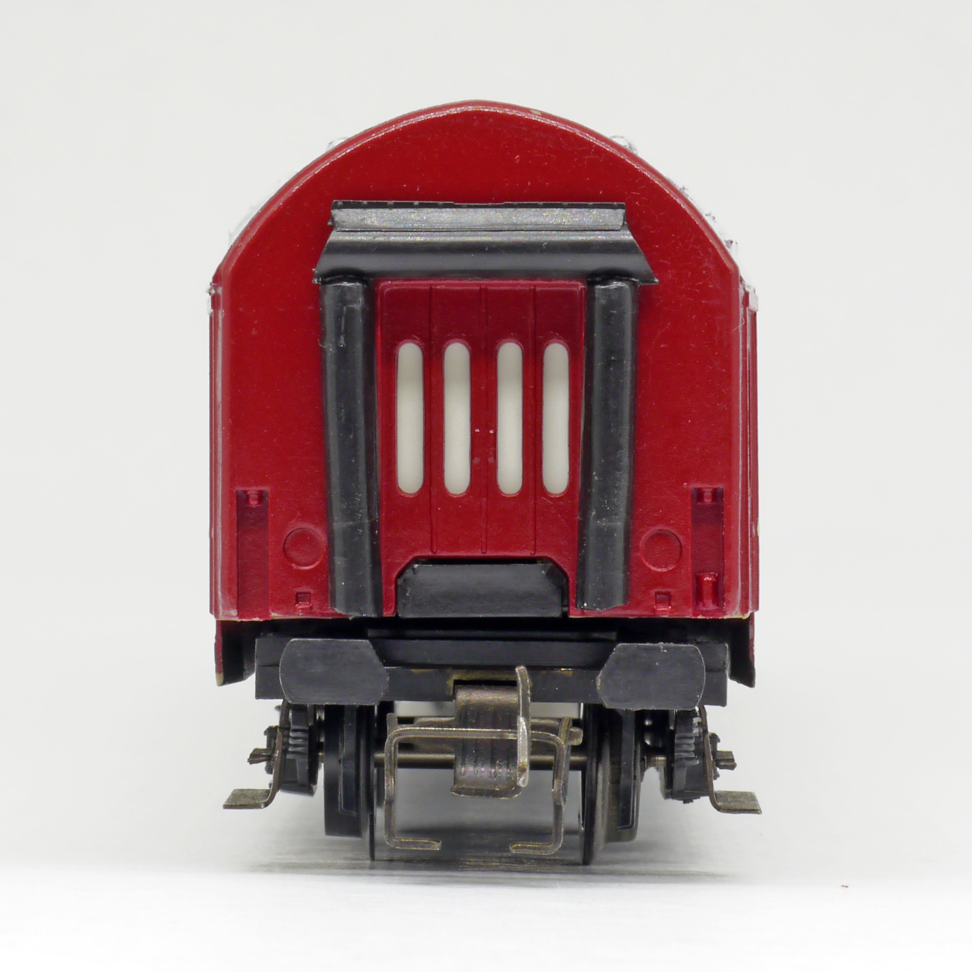 | jídelní vůz červený s šedou střechou jídelní „MITROPA“ |