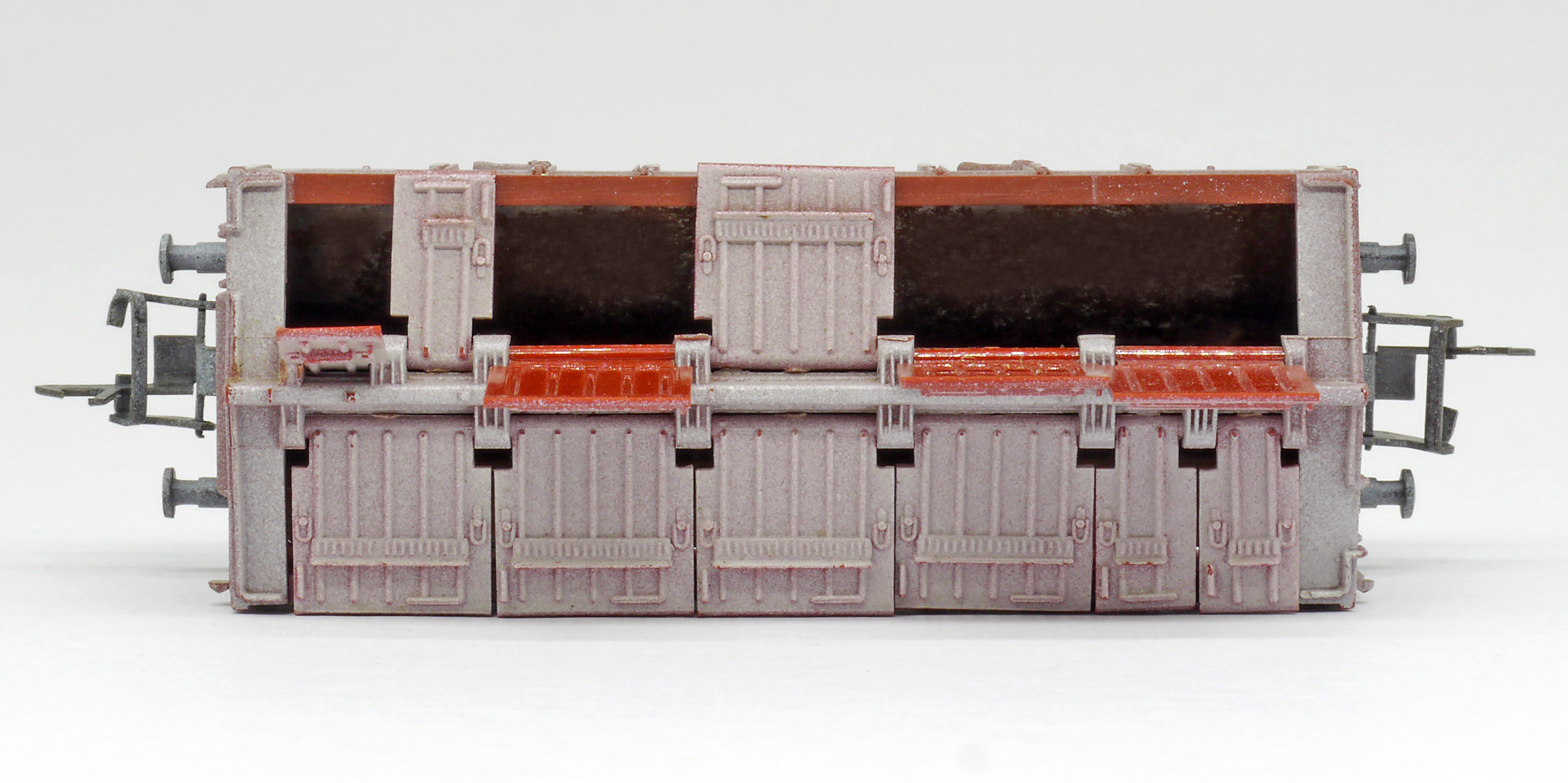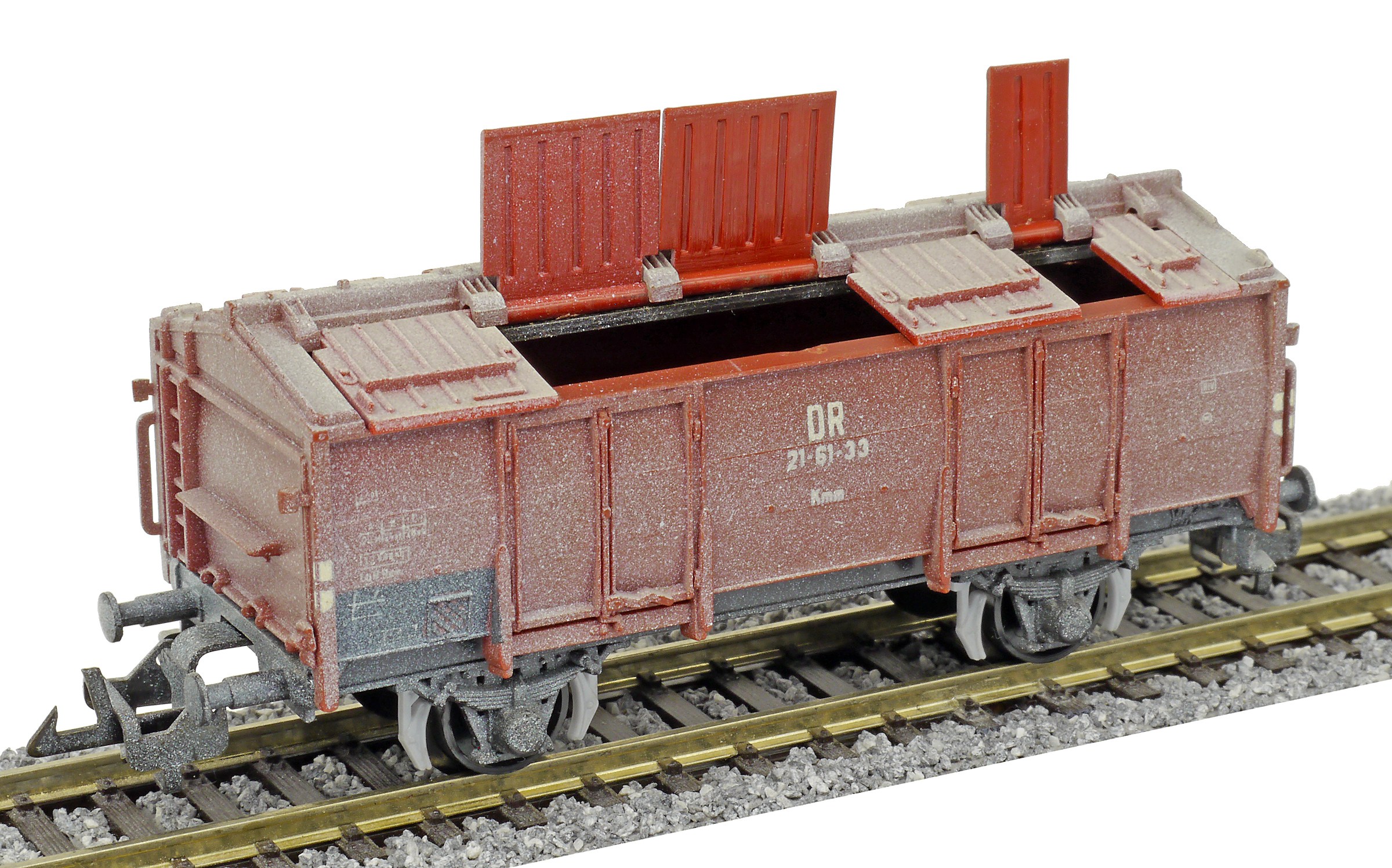 | nákladní vůz na přepravu vápna červenohnědý s odklopnými víky |