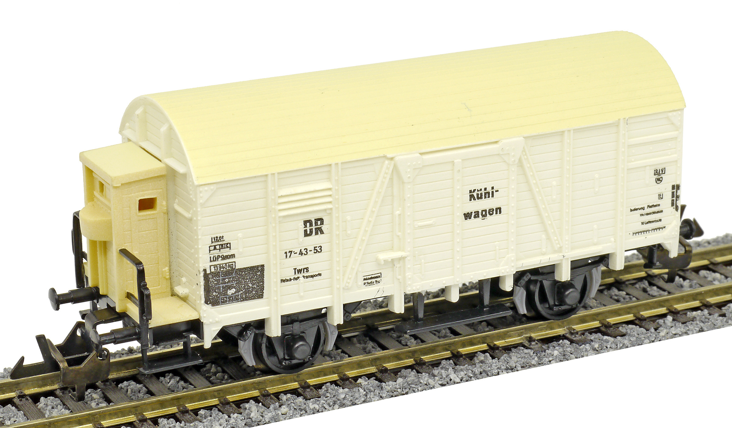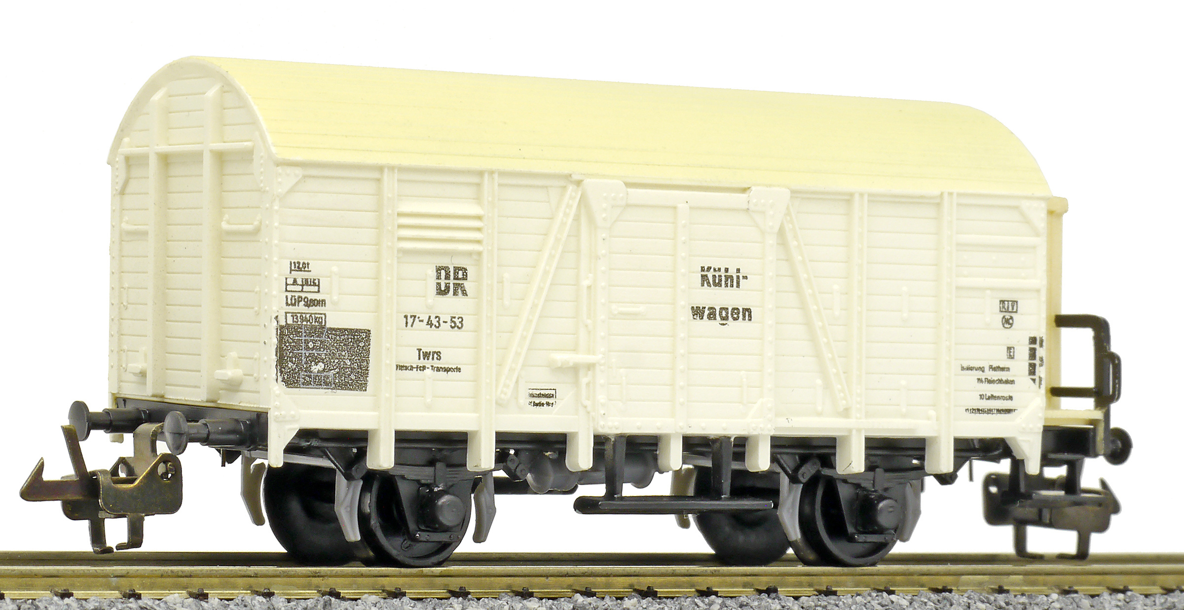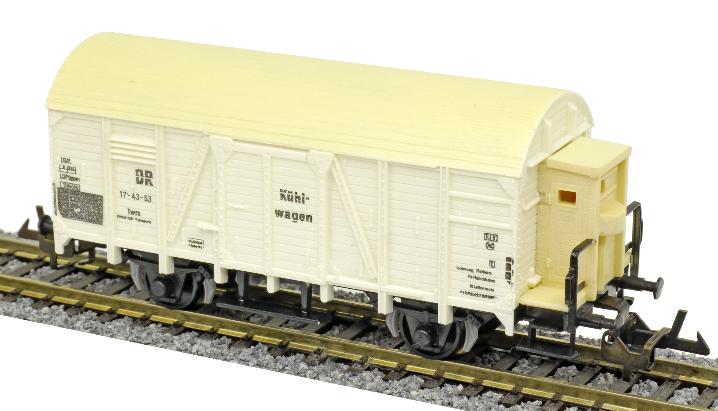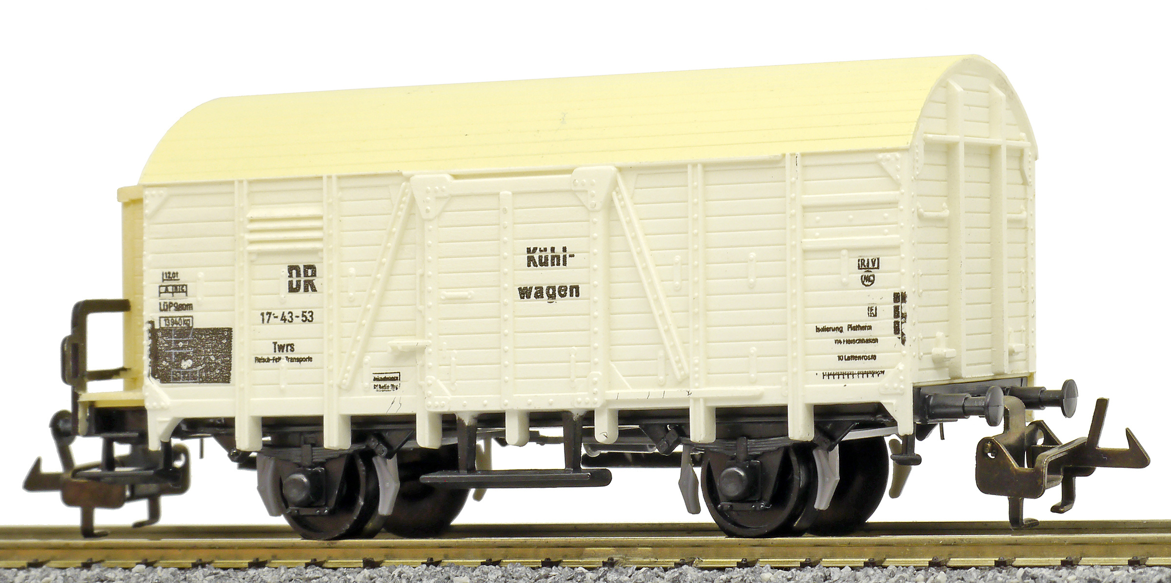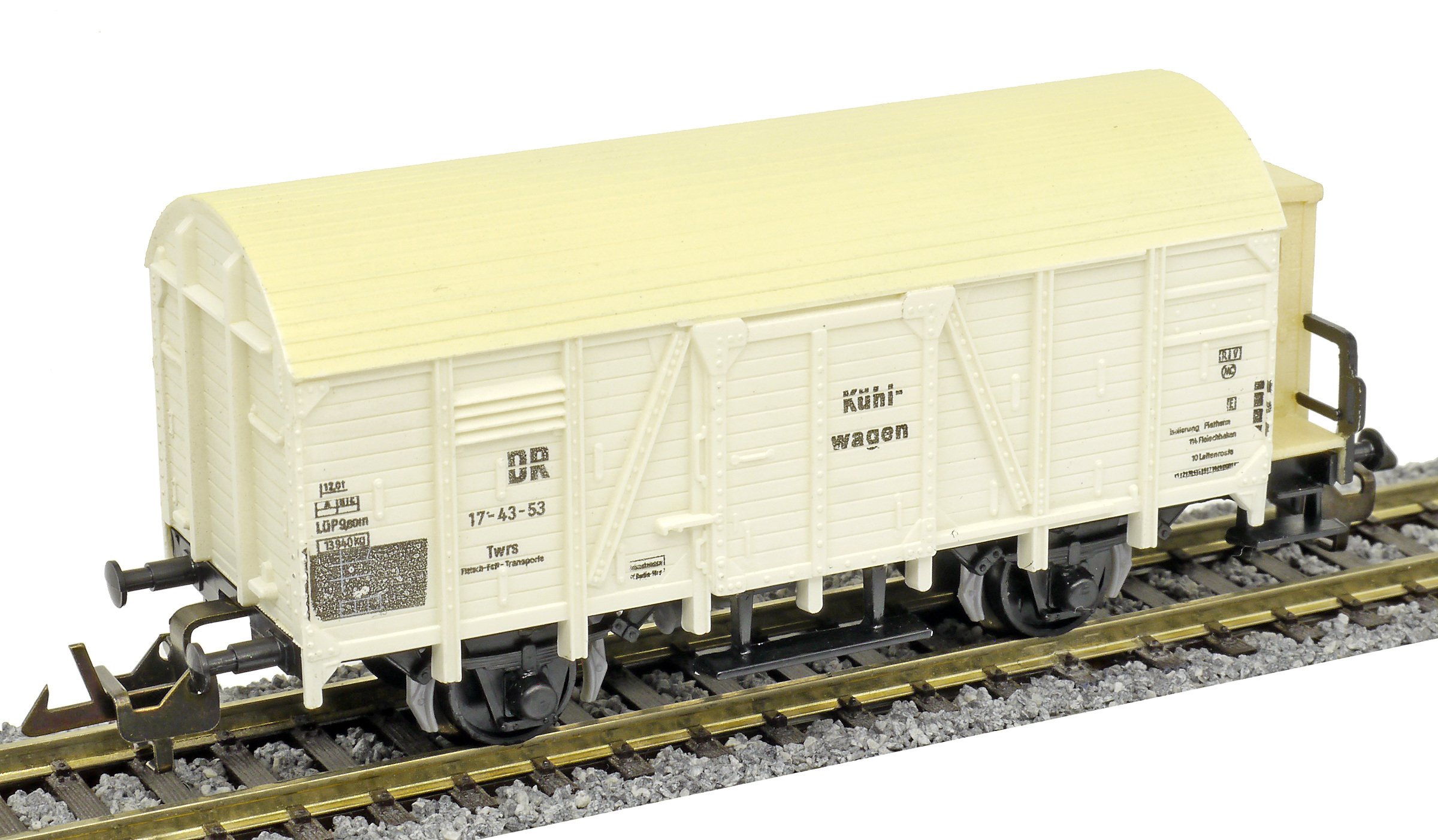 | nákladní chladící vůz bílý s krémovou střechou a s brzdařskou budkou „Kühlwagen“ |