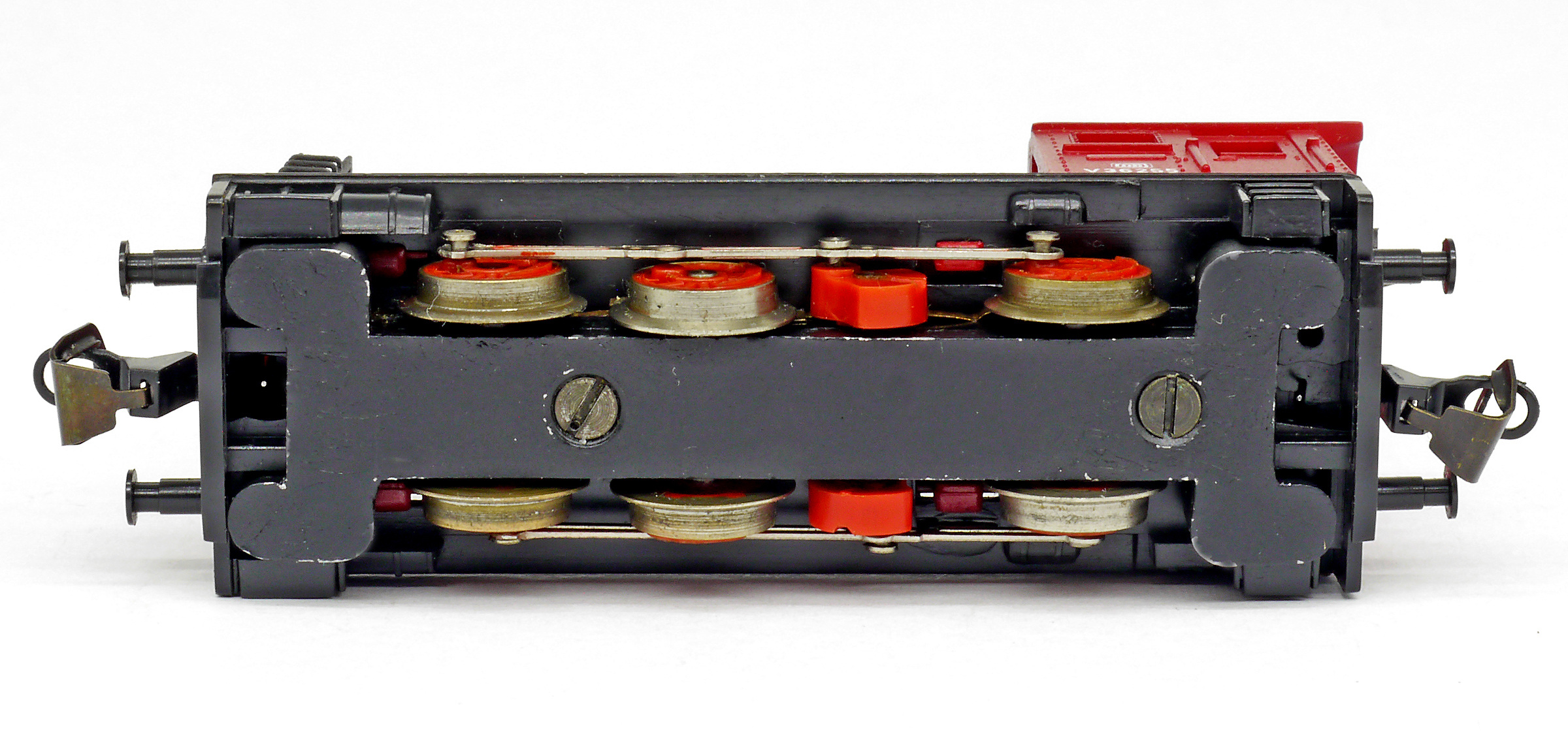 Popis   dieselová lokomotiva červená s černým rámem, červená kola