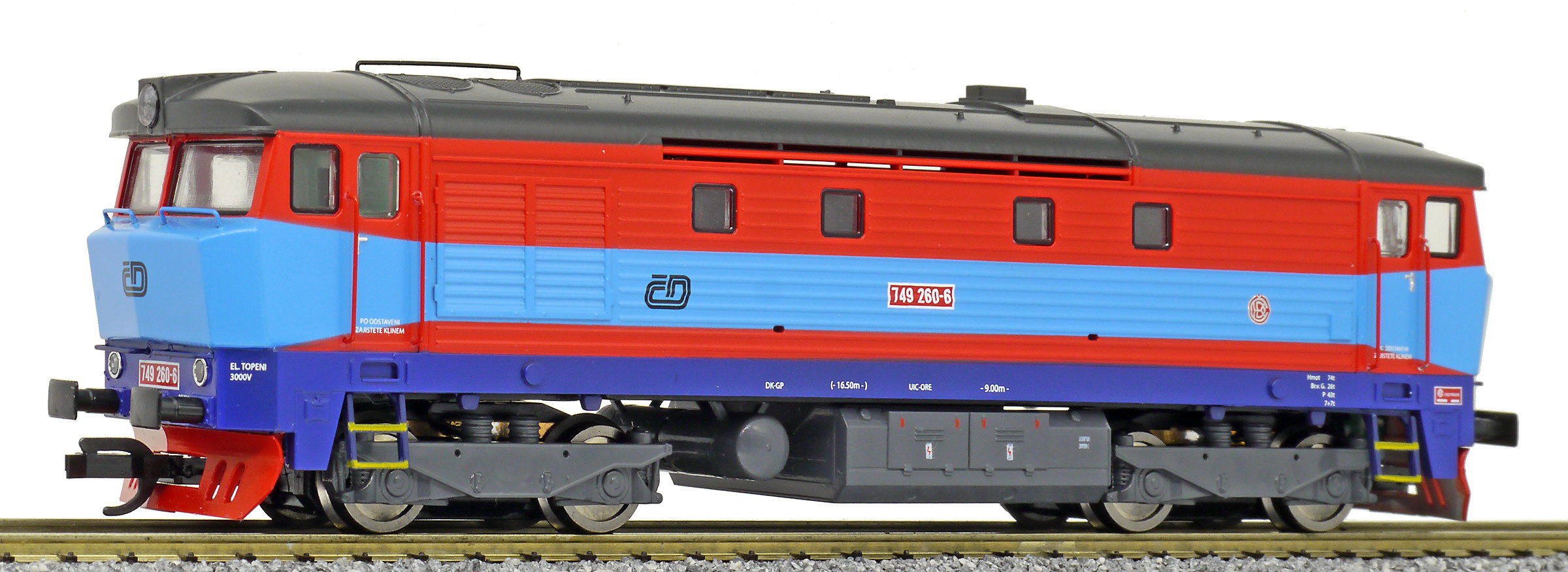 Popis   dieselová lokomotiva červená-modrá, hnědá střecha
