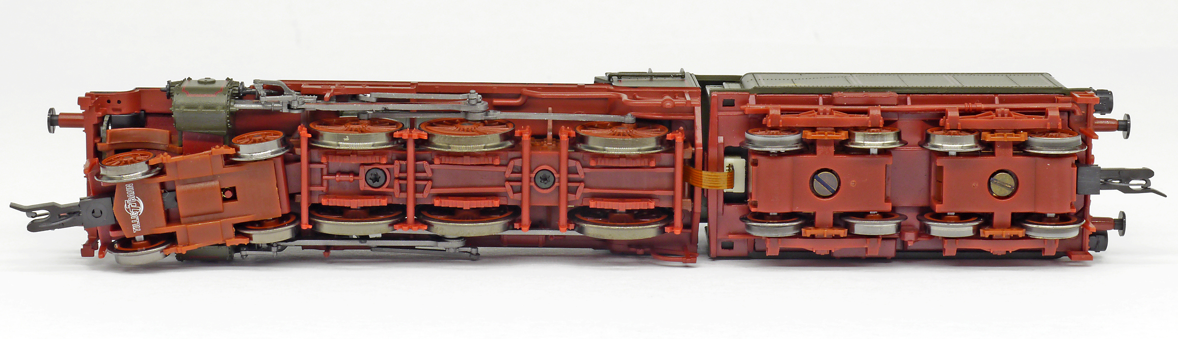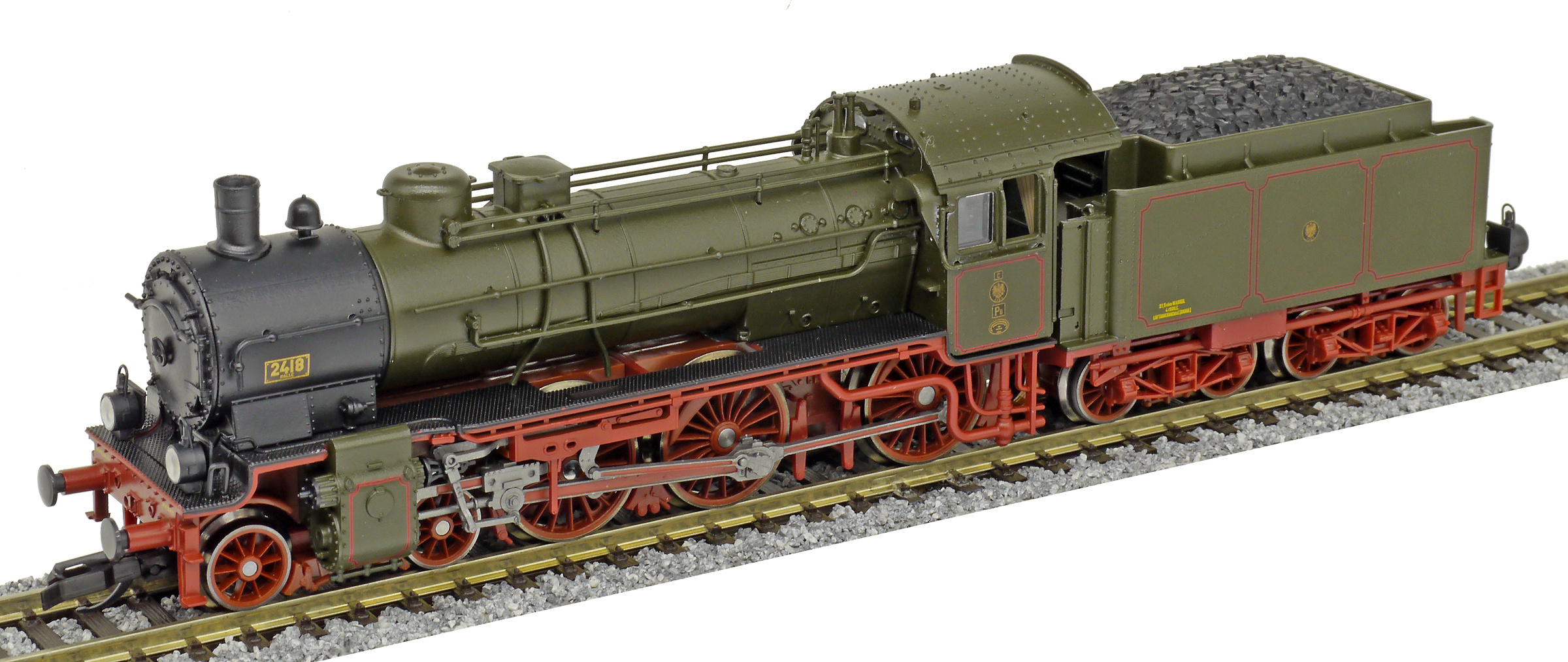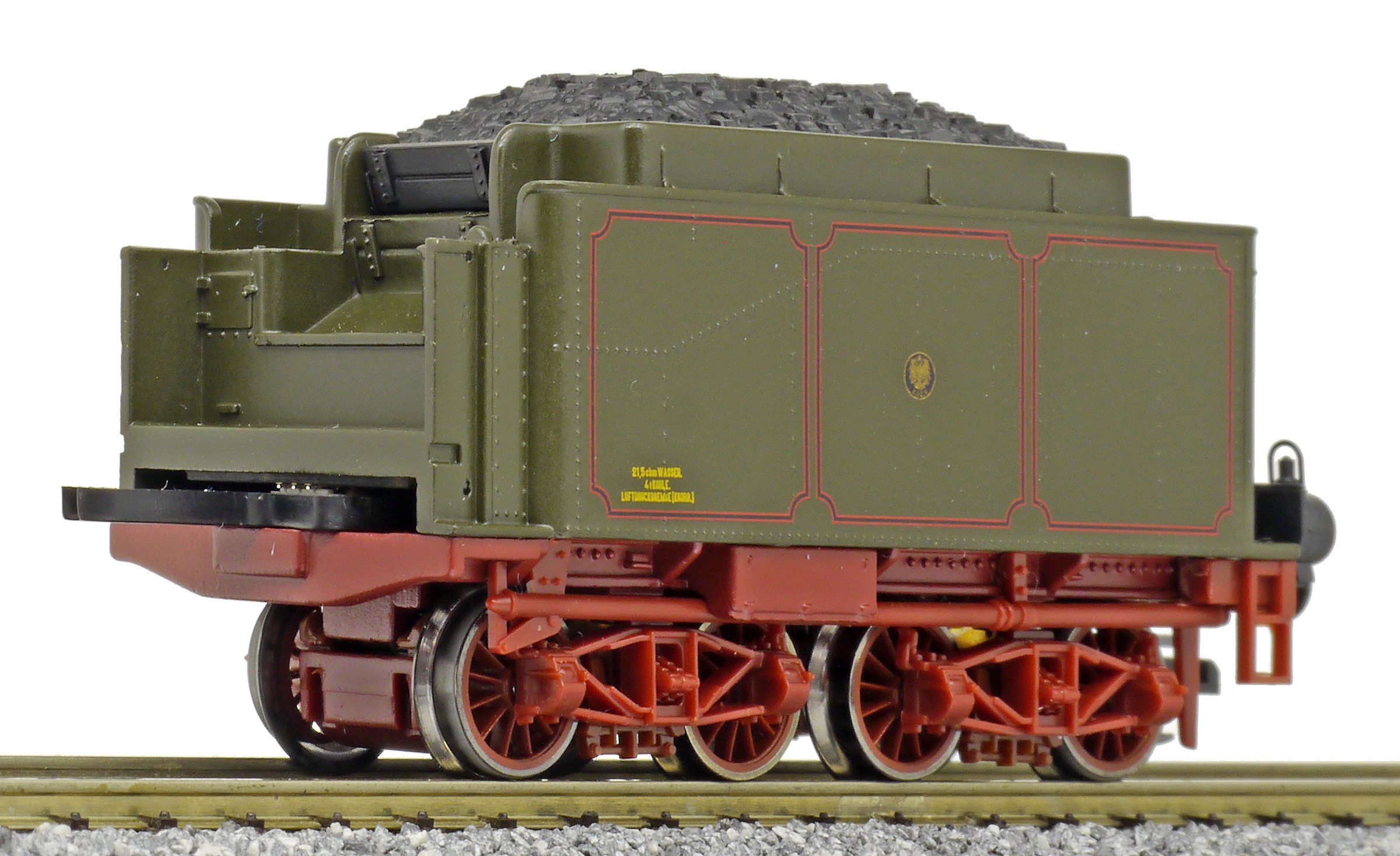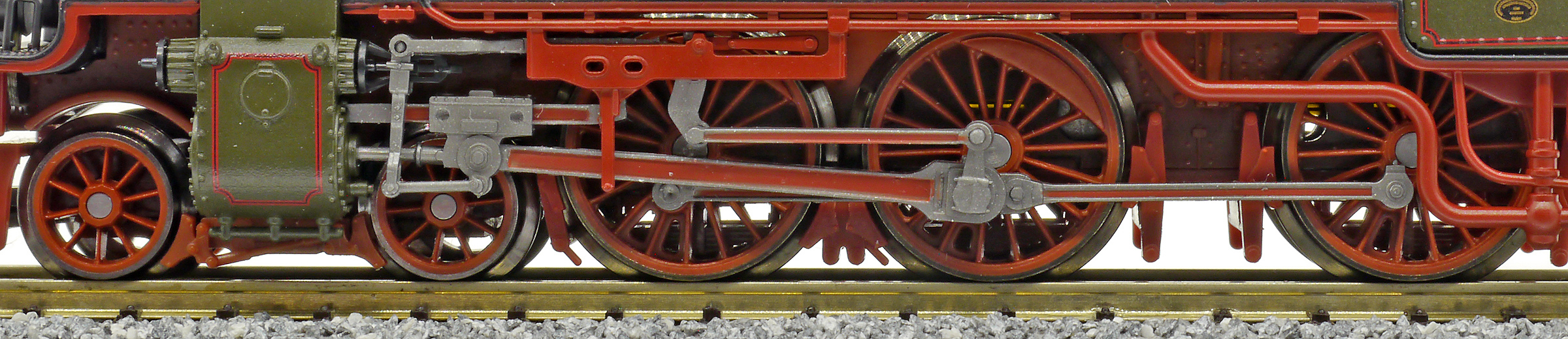 Popis   parní lokomotiva tmavě zelená s červeným pojezdem