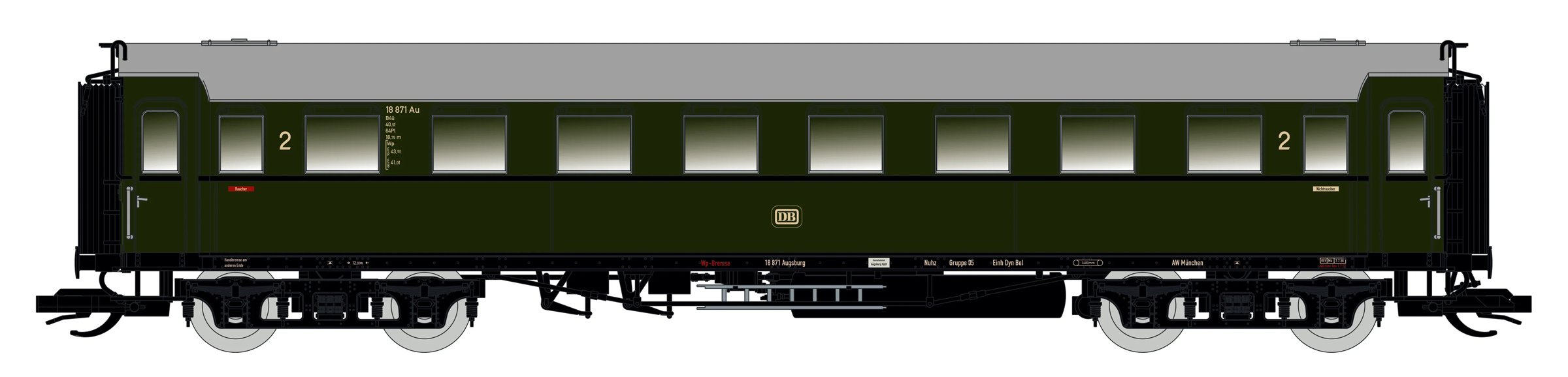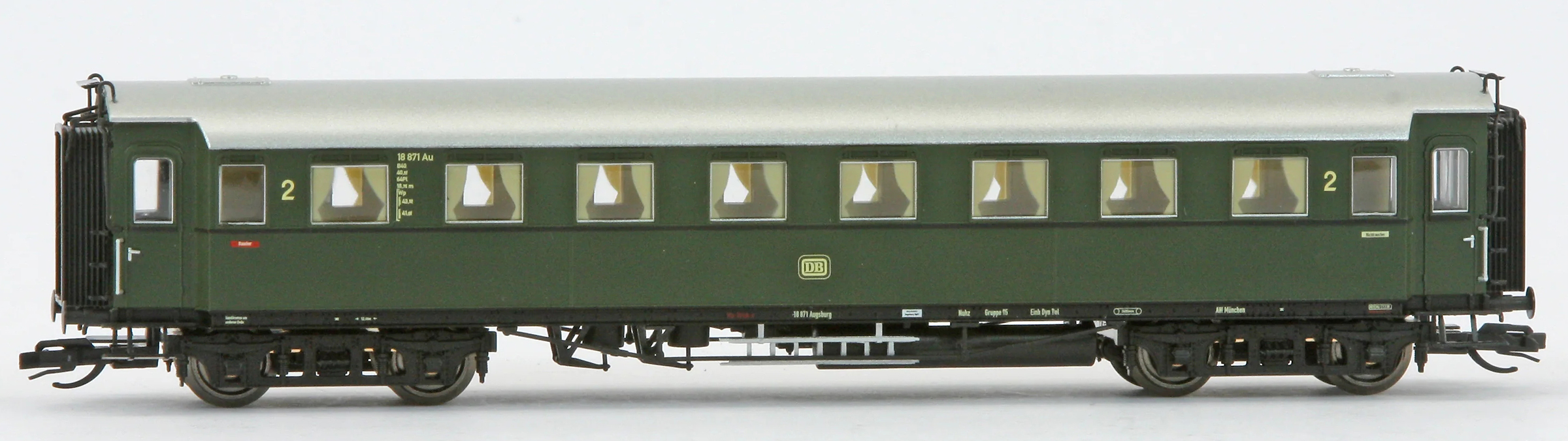 oddílový osobní vůz zelený s šedou střechou 2. tř.